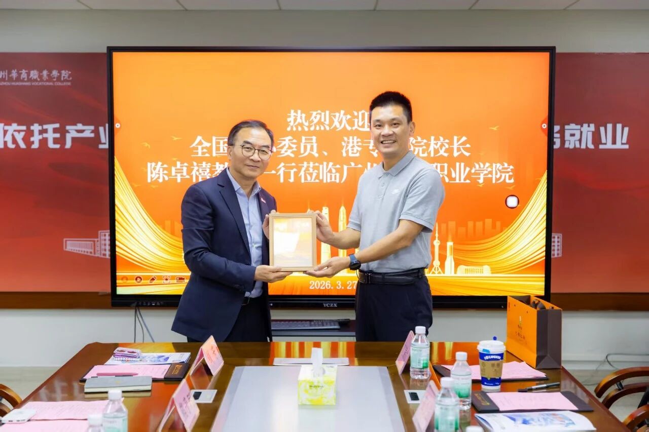 3月27日,全国政协委员、香港港专学院校长陈卓禧教授率团到访广州华商职业学院开展调研交流。学校常务副校长袁国繁、学校办公室主任袁晓斌、国际教育学院院长钱芳、京东零售校企合作华南区负责人金星星、华商科教集团总裁助理熊子珂以及学校相关职能部门与二级学院领导出席活动。