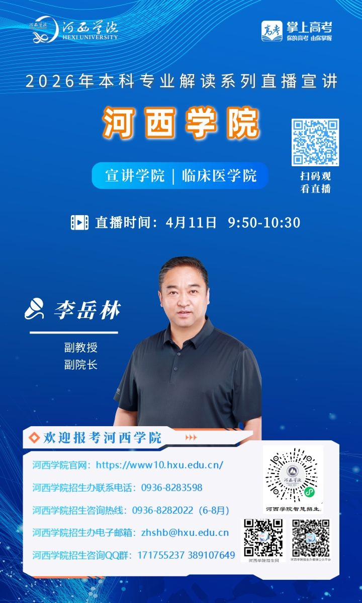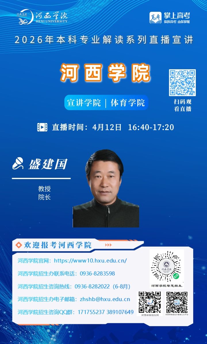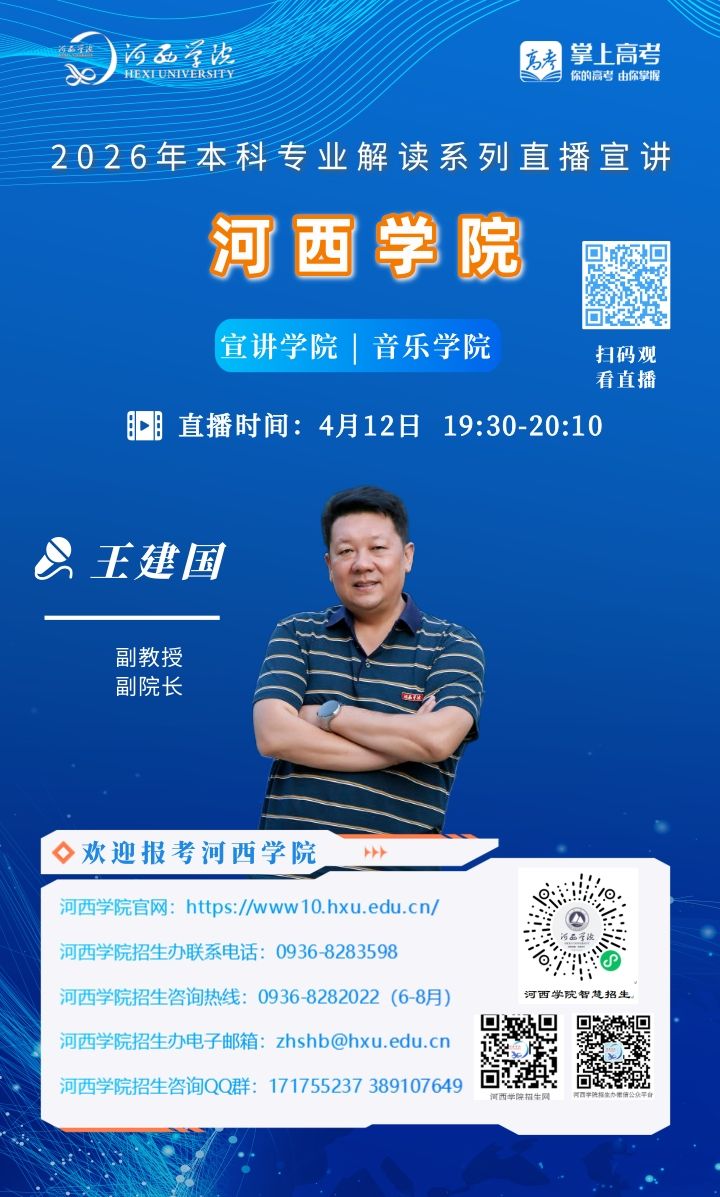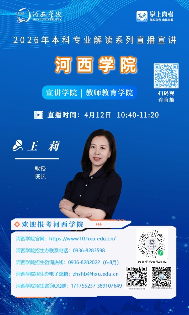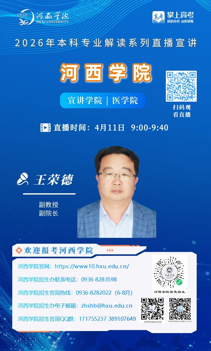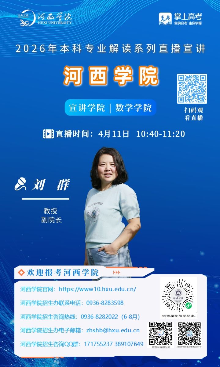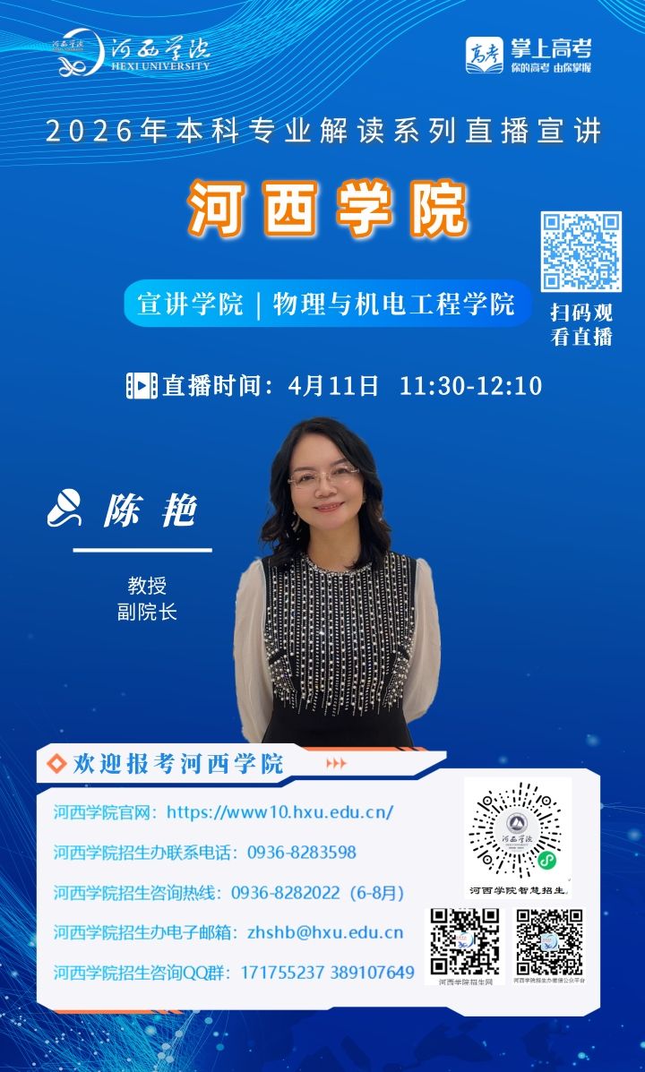 可扫描海报上的二维码观看,河西学院招生办微信视频号将同步直播。