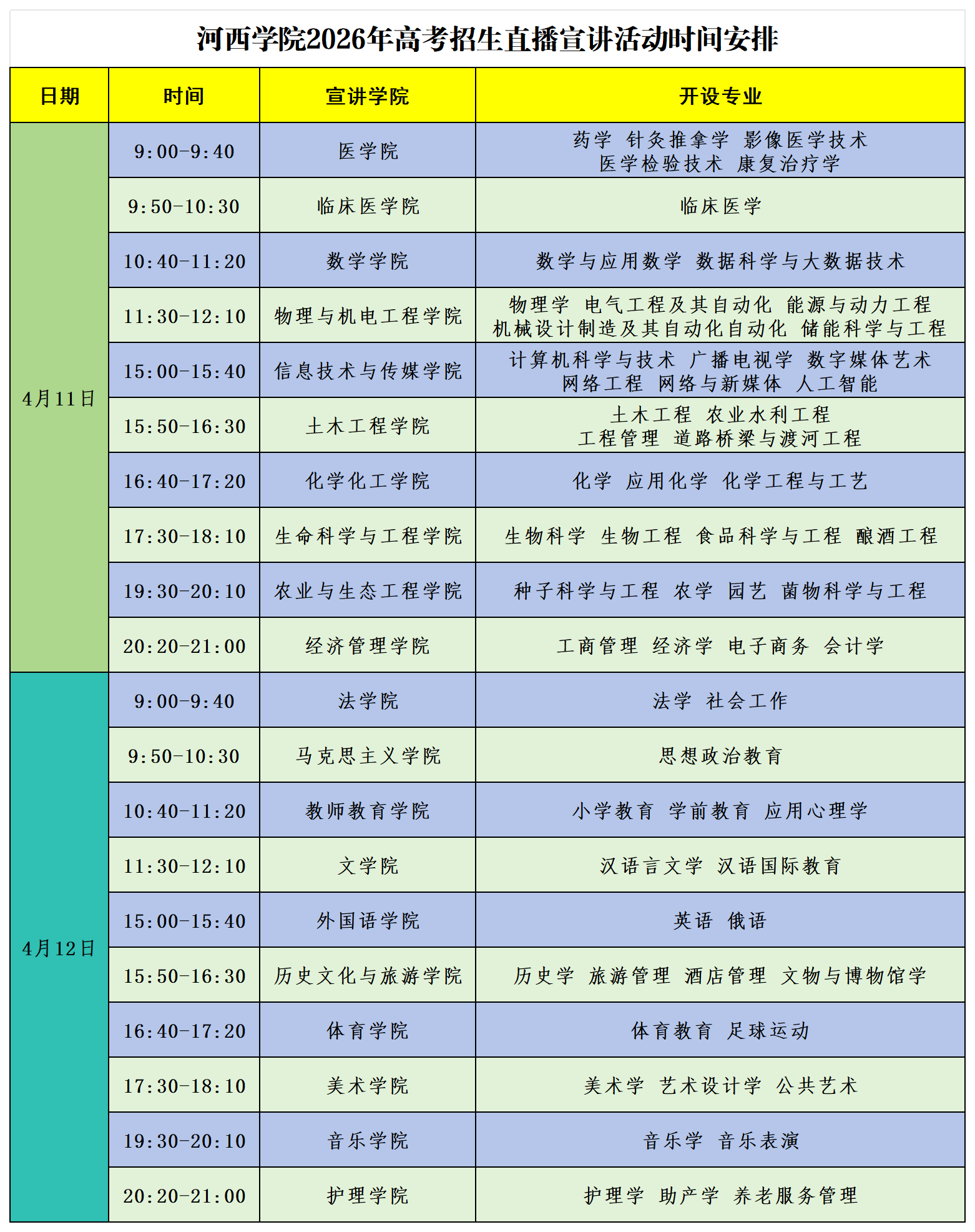 河西学院将举行2026年本科专业解读系列直播宣讲活动,