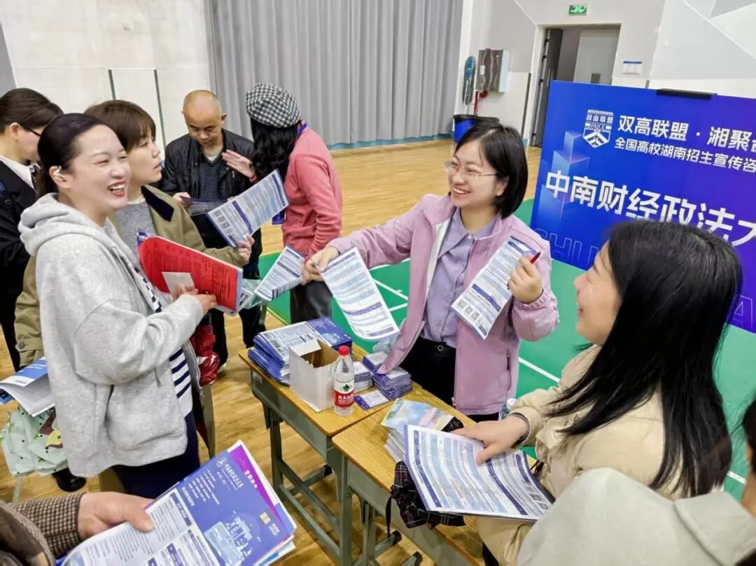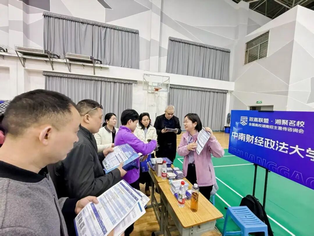 本次招生宣讲紧扣“精准对接需求、深度解读优势”核心,宣讲团队立足学校办学定位与学院专业特色,为各中学学生和家长带来干货满满的升学指导。在面对面交流环节,两位老师围绕我校“财经政法深度融通”的办学特色与“融通性、创新型和开放式”的人才培养理念展开详细介绍,系统讲解学校以经济学、法学、管理学为主干,多学科门类协调发展的学科体系,结合当下经济社会发展趋势与行业人才需求,深入解析财经政法类复合型人才的培养路径与发展前景,让在场学子清晰了解我校的专业优势与育人特色。两位老师还详细介绍了学校“希贤计划”拔尖创新人才项目,学校充分尊重学生志趣的灵活转专业政策,相关利好政策吸引了大量潜在优质考生,咨询现场热闹非凡。