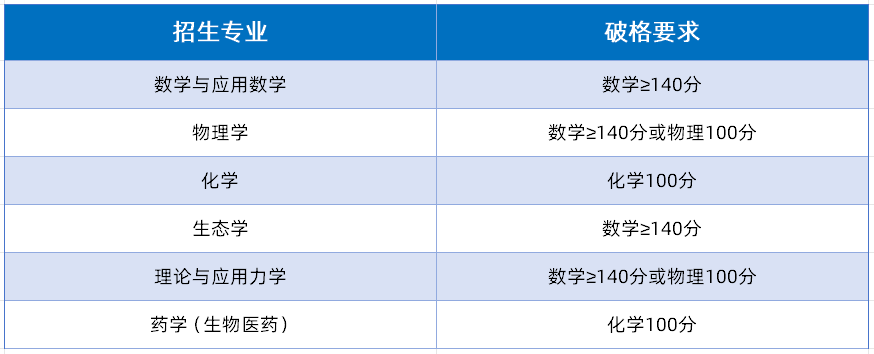 2026年破格入围条件与2025年保持一致, 报考数学与应用数学、物理学等专业且已确认报考的学生,如单科成绩符合以下要求,即可破格入围。