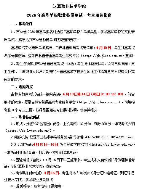 2026年高职单招职业技能测试-考生服务指南