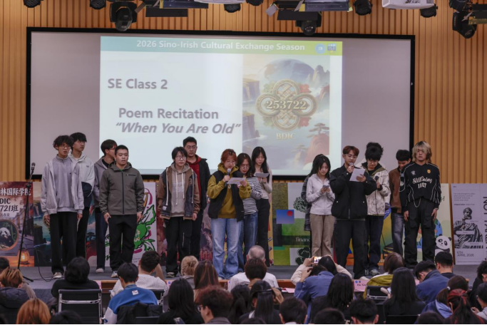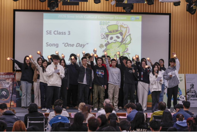 为深化中爱文化交流,丰富校园文化生活,展现学子青春风采与班级凝聚力,4月8日下午,学院2026年班级风采展示活动(Talents Show)在艺设报告厅顺利举行。学院党委书记吴文英、教学科研副院长Henry McLoughlin、中外教师代表及400余名新生出席活动,共赏这场青春与文化交融的盛宴。