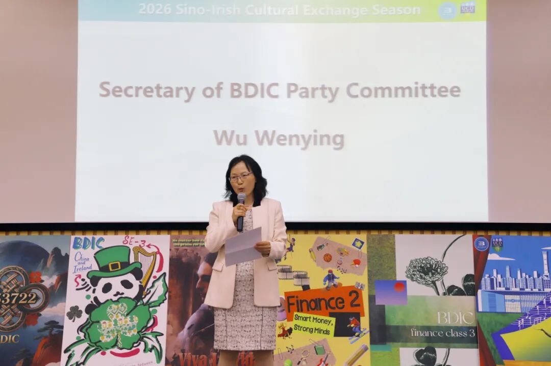 首先,吴文英书记发表致辞。她指出,学院以培养具有国际视野、家国情怀与过硬综合素质的国际化人才为使命,中爱文化交融是学院人才培养的鲜明底色,助力同学们扎根中国、对接世界,成为中外文化交流的使者。她强调,学院坚持德智体美劳全面发展理念,重视审美培养与人文素养培育,引导同学们在感受美、创造美的过程中涵养品格、勇于担当、收获成长,鼓励同学们在舞台上尽情绽放,展现青春活力与班级风采,成长为德才兼备、兼具国际竞争力与家国责任感的新时代青年。