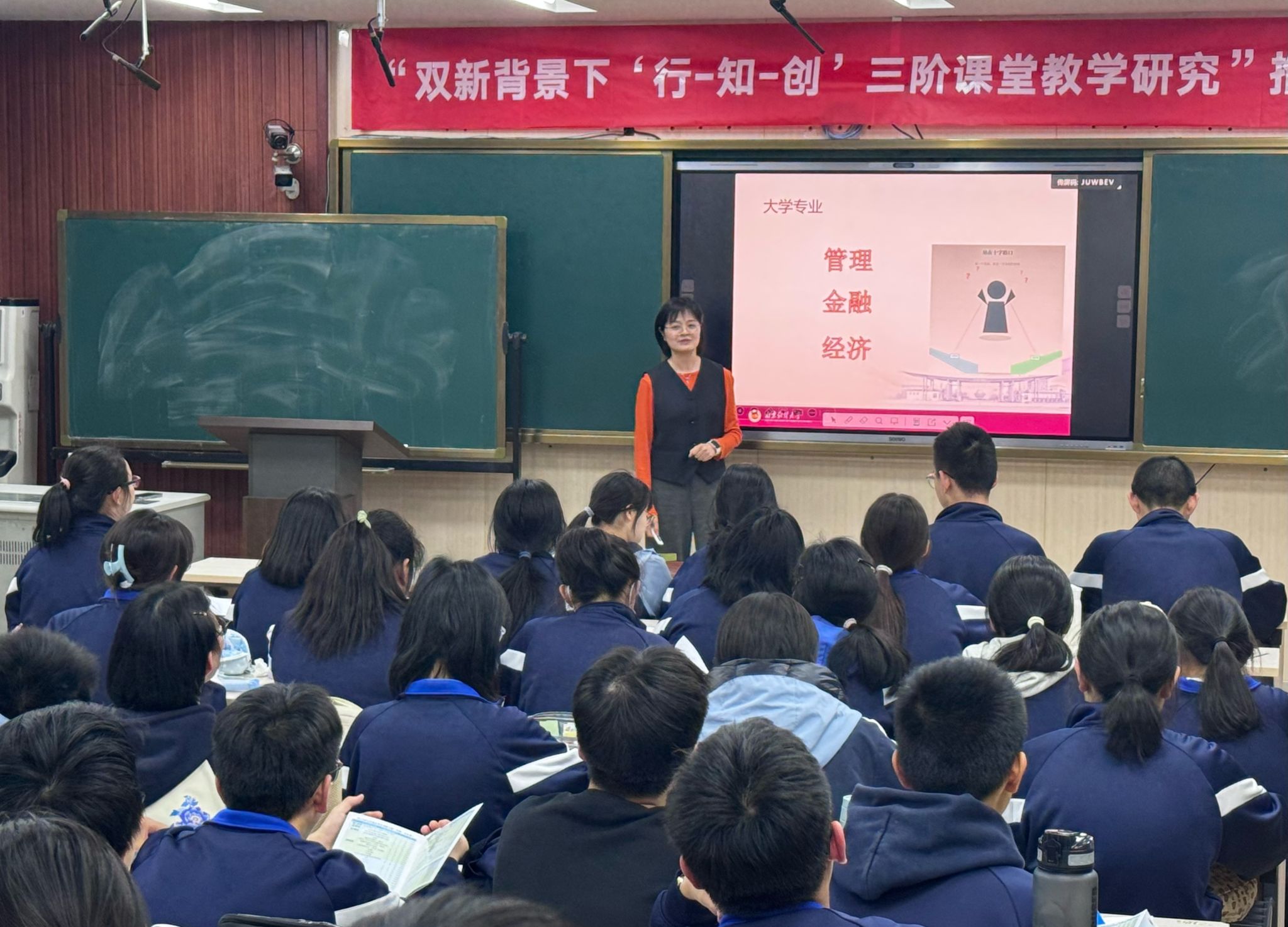 尹海燕副书记面向高一学生开展招生宣讲,细致解读学校招生政策、专业优势与发展前景;工商管理学院教师包佳妮为高中生作“财智融通”专题讲座,用贴近中学生的鲜活案例讲授财经管理知识,课堂互动积极热烈,有效激发了同学们对财经领域的学习热情。