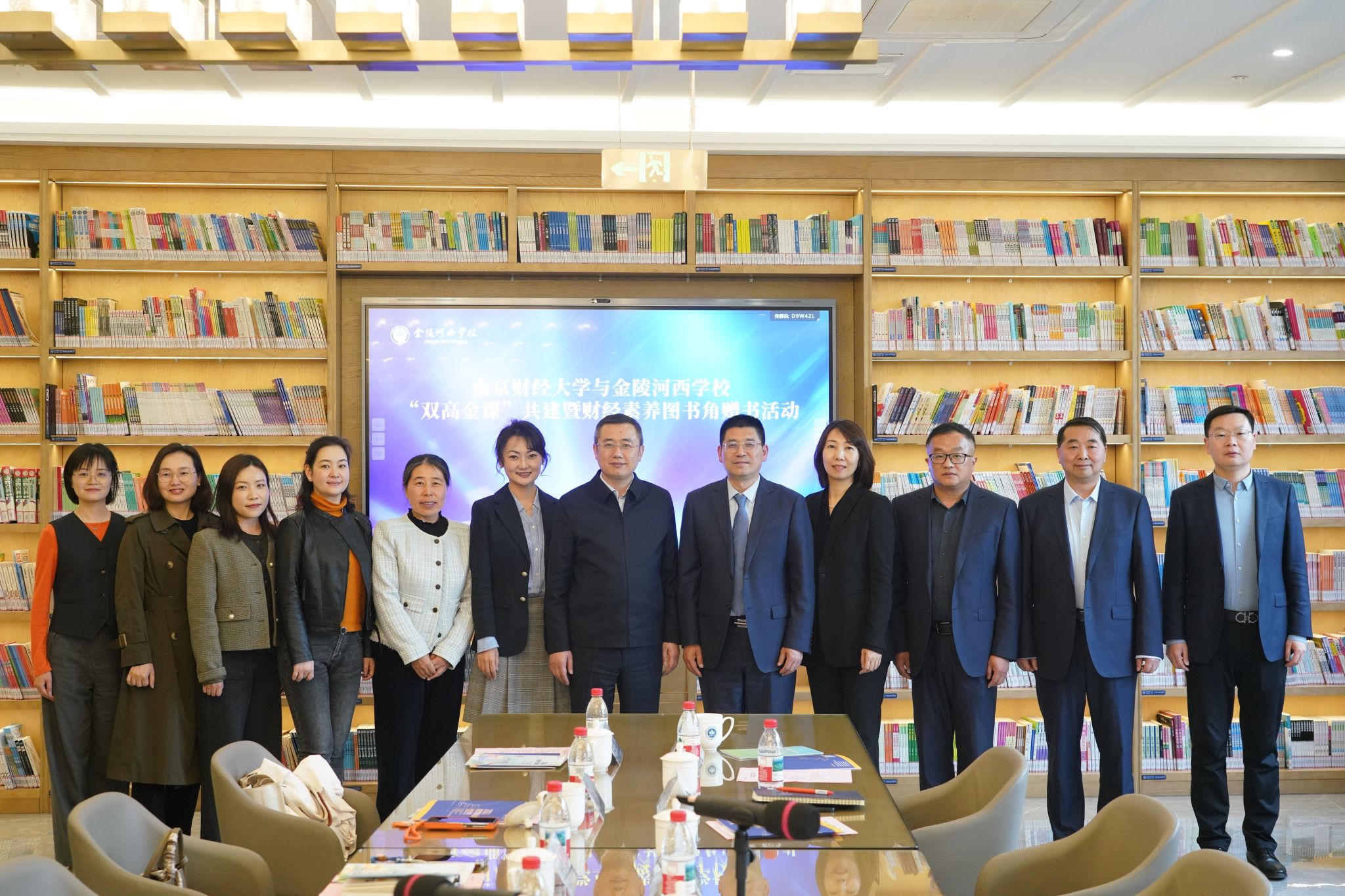 4月8日下午,党委常委、副校长赵国栋一行前往南京市金陵河西学校,开展“双高金课”共建暨财经素养图书角赠书活动。南京市金陵河西学校党委副书记、副校长仇巧芳,副校长、高中部校长赵建宁,副校长李楠楠、李烨、袁廷虎、冯伯君等出席活动,我校工商管理学院党委书记、南京招生组组长张杰,粮食和物资学院党委书记吴丹,学生处副处长、招生办主任全真真,工商管理学院党委副书记、南京招生组副组长尹海燕等参加活动。