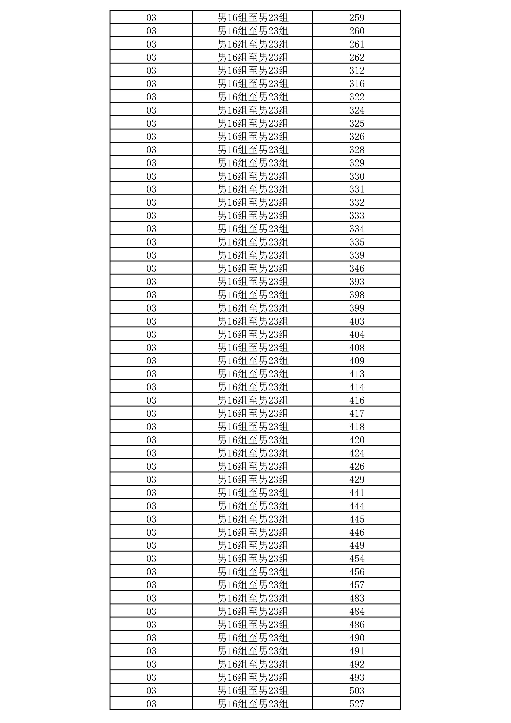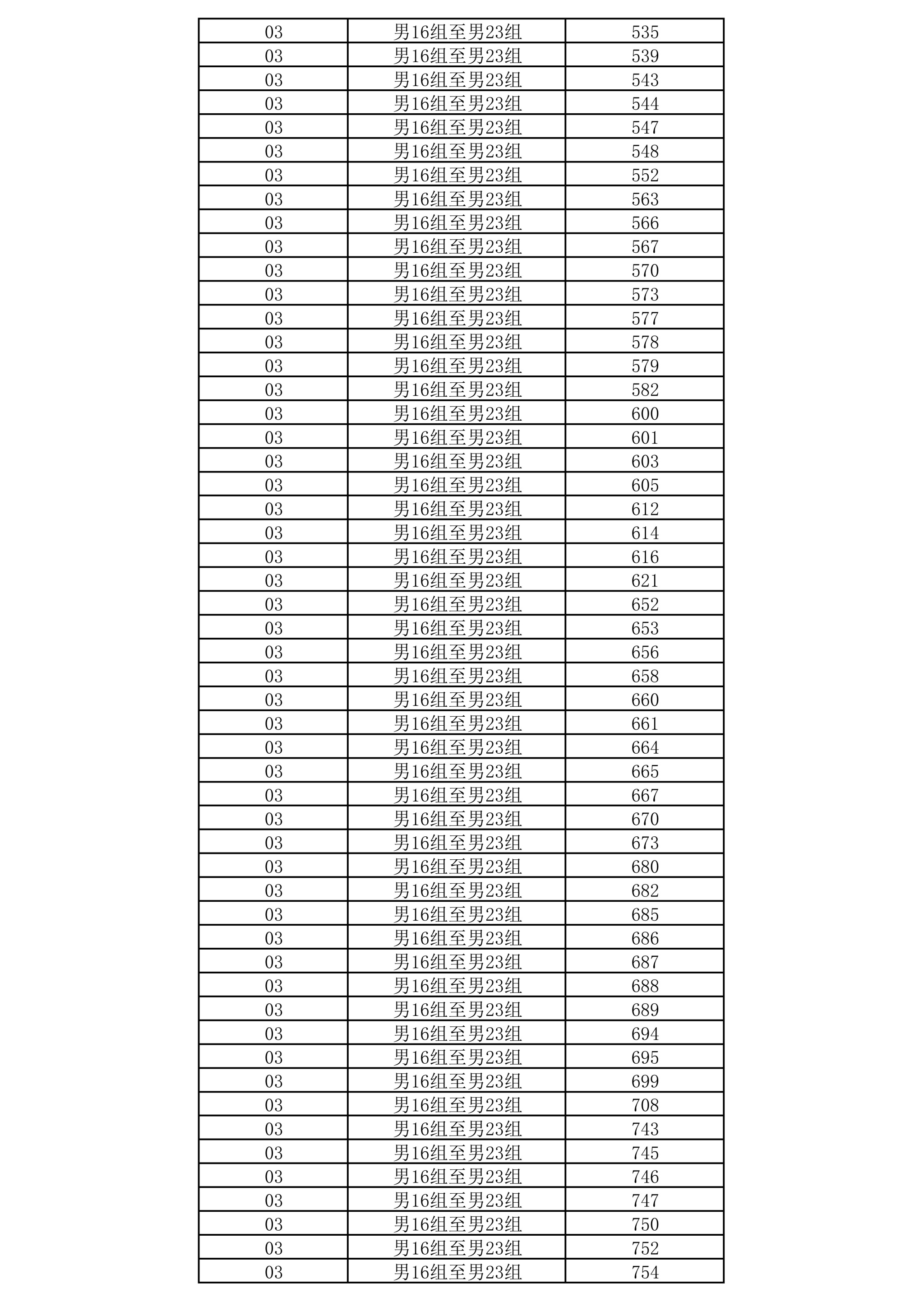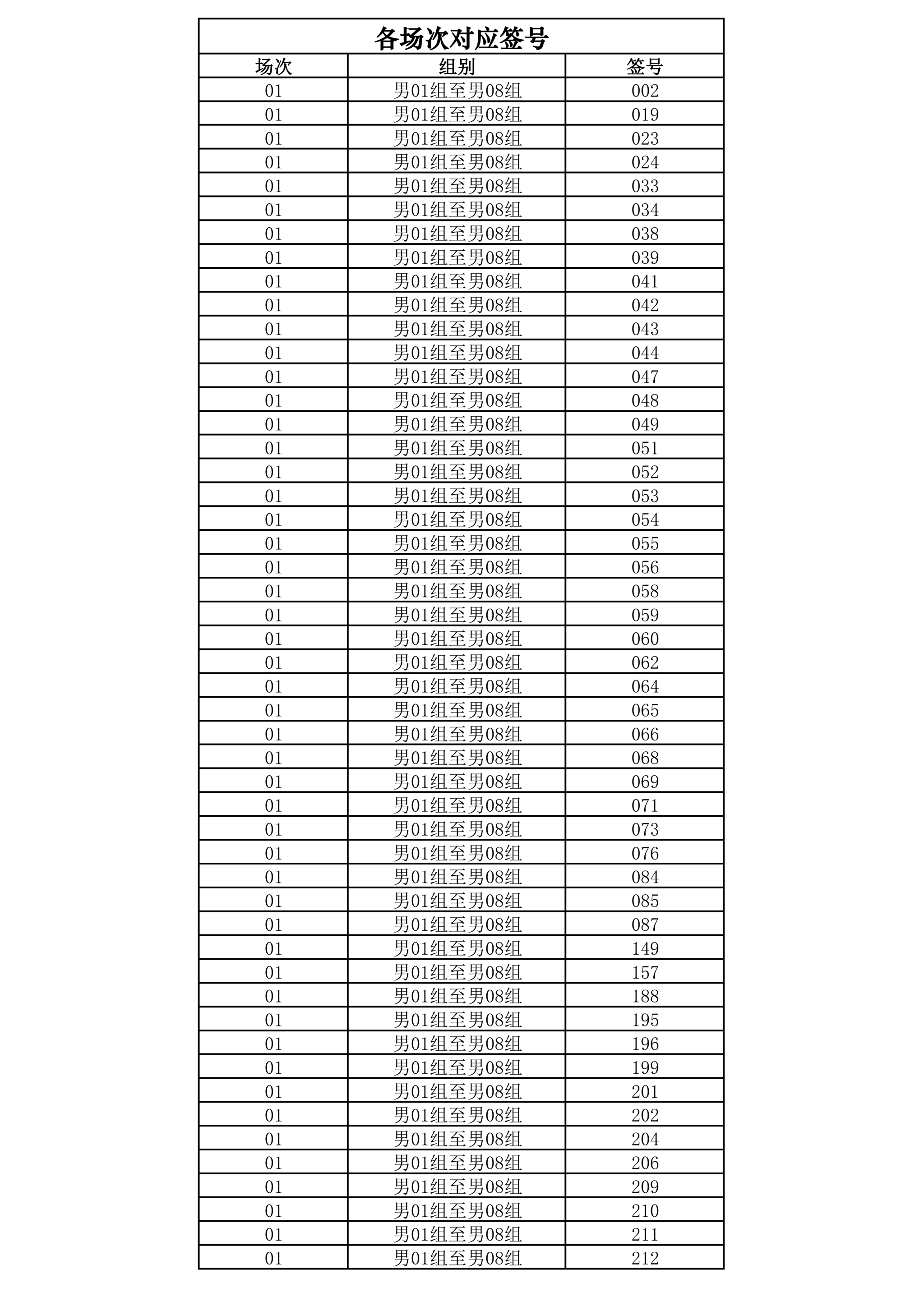 03 | 男 | 男16组至男23组 | 8 | 12:30 | 13:00 | |