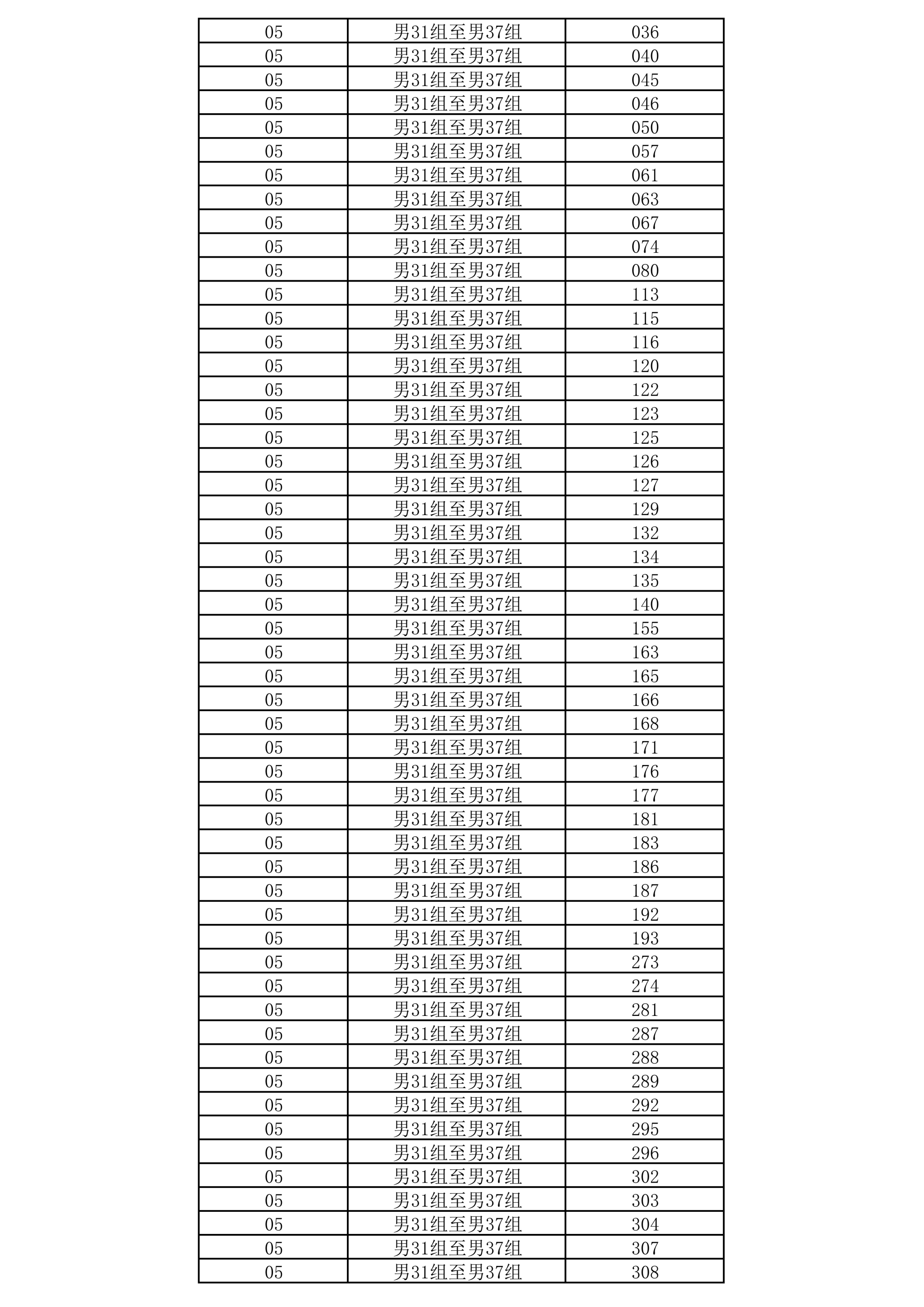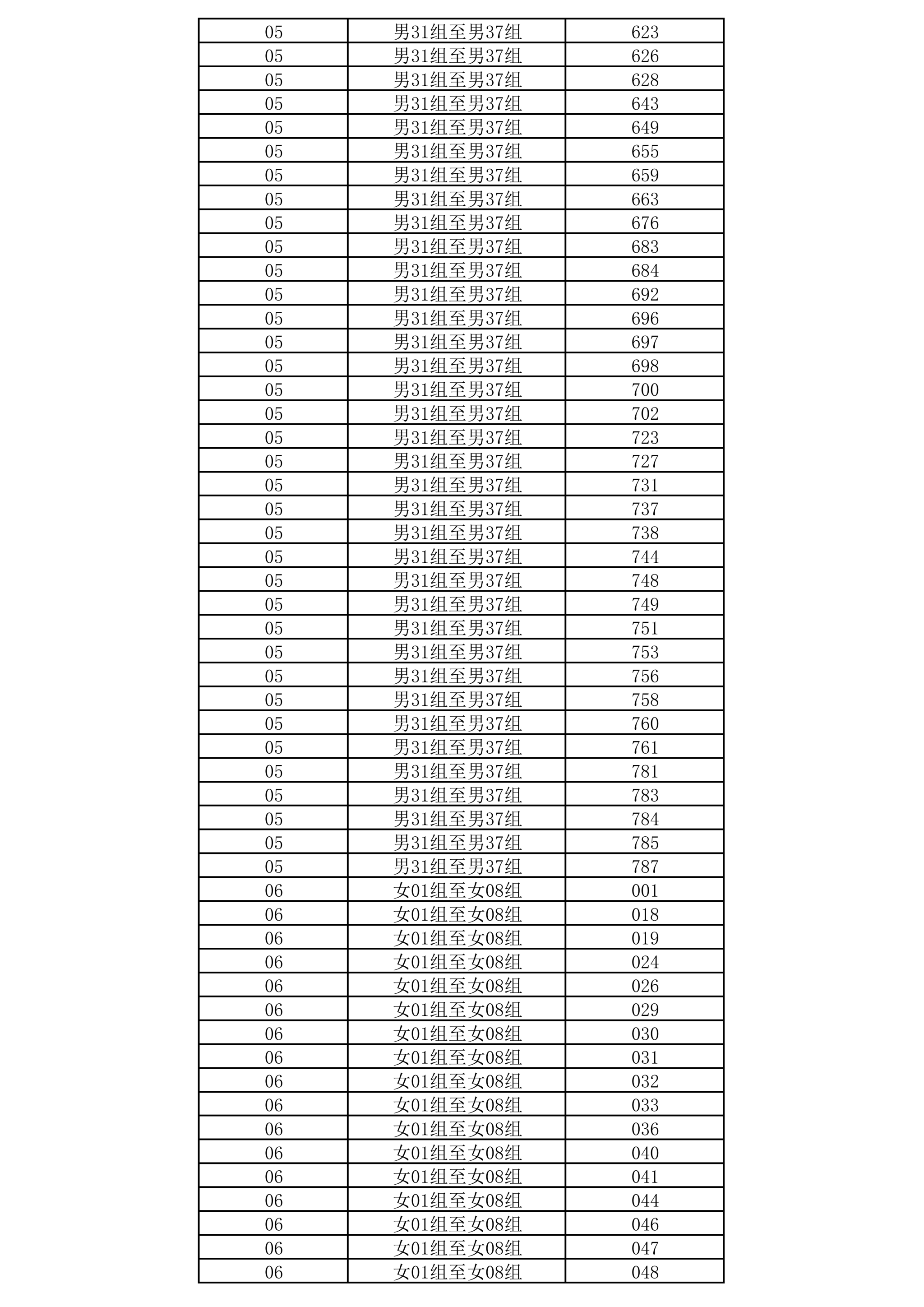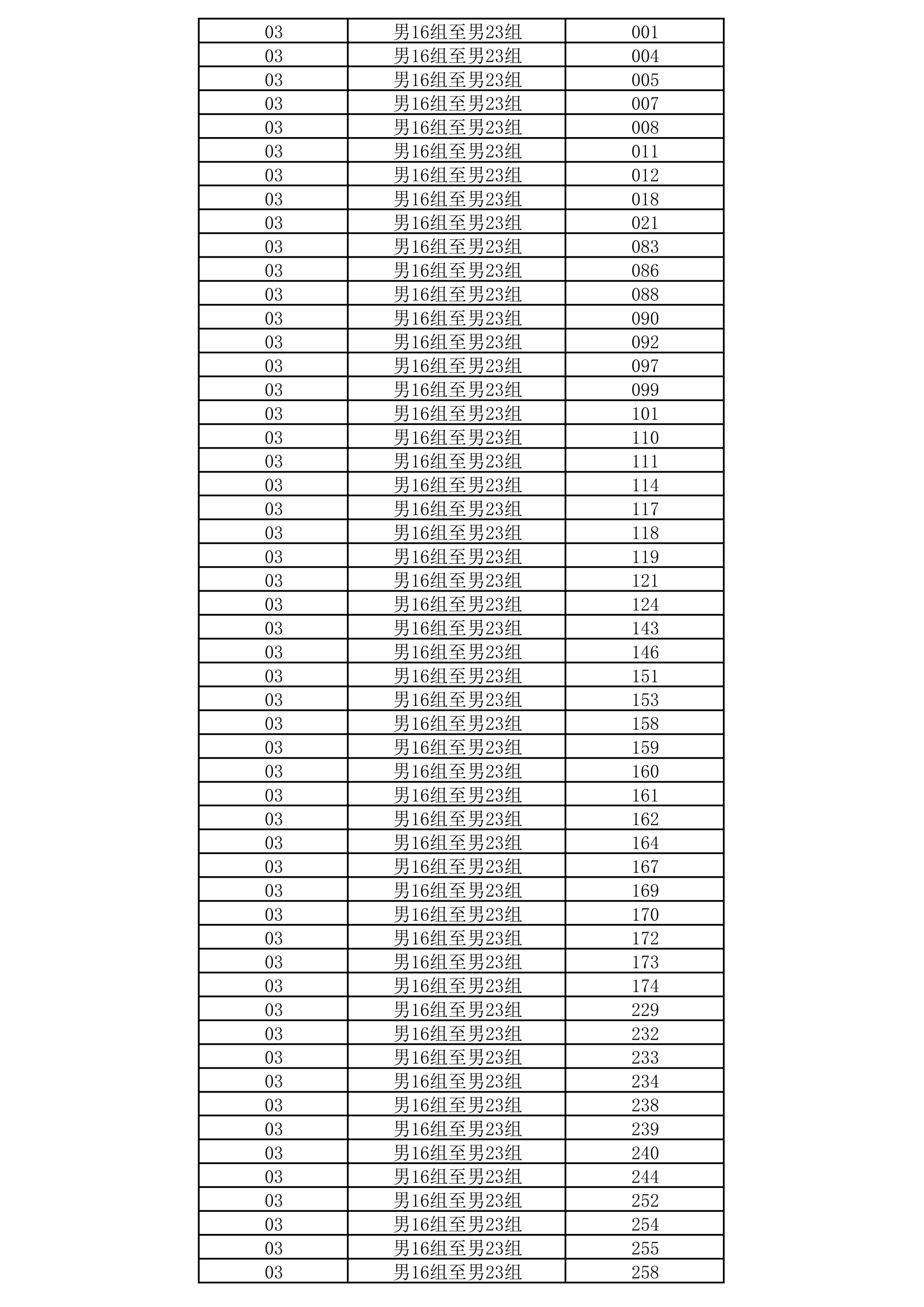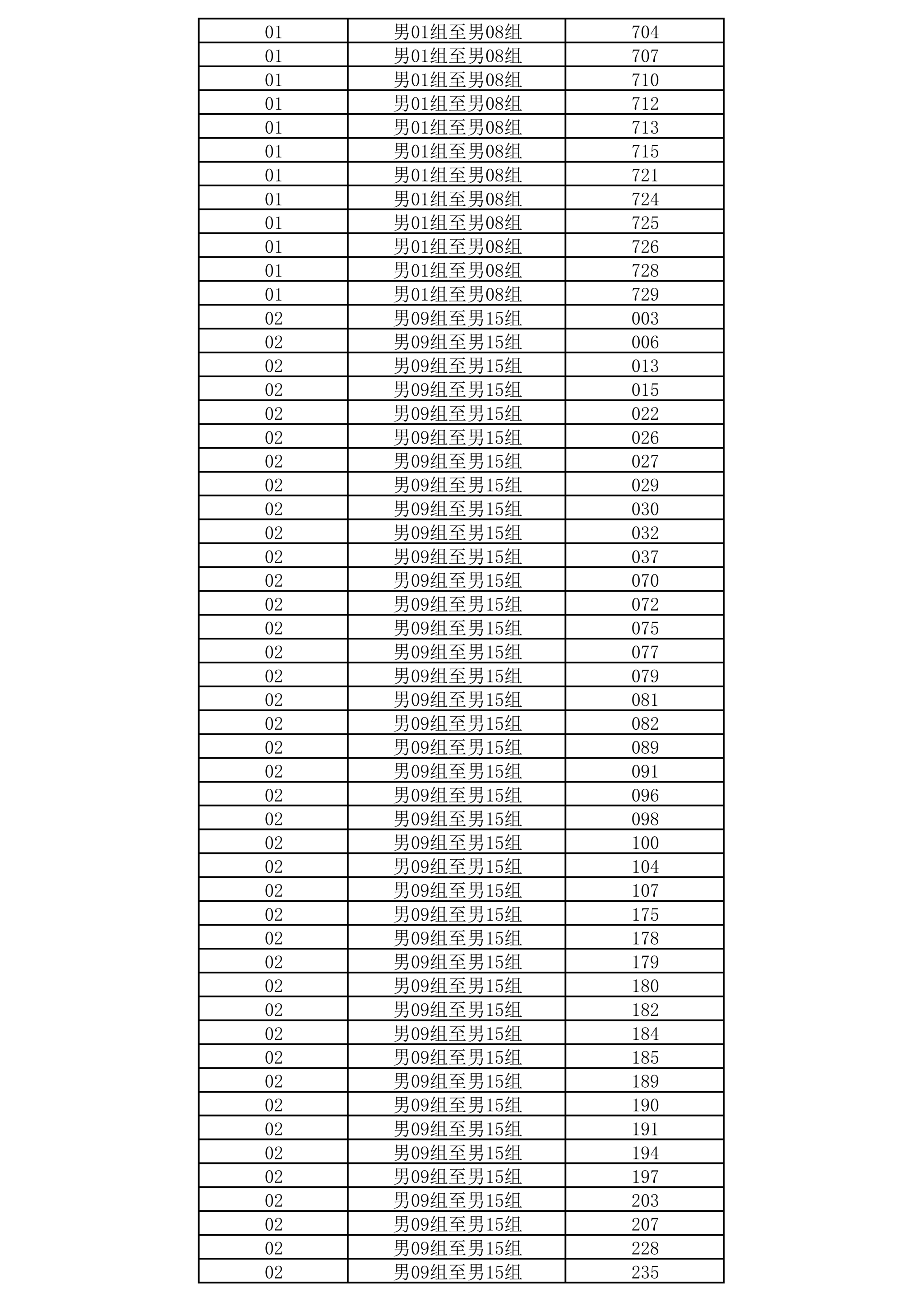 03 | 男 | 男16组至男23组 | 8 | 12:30 | 13:00 | |