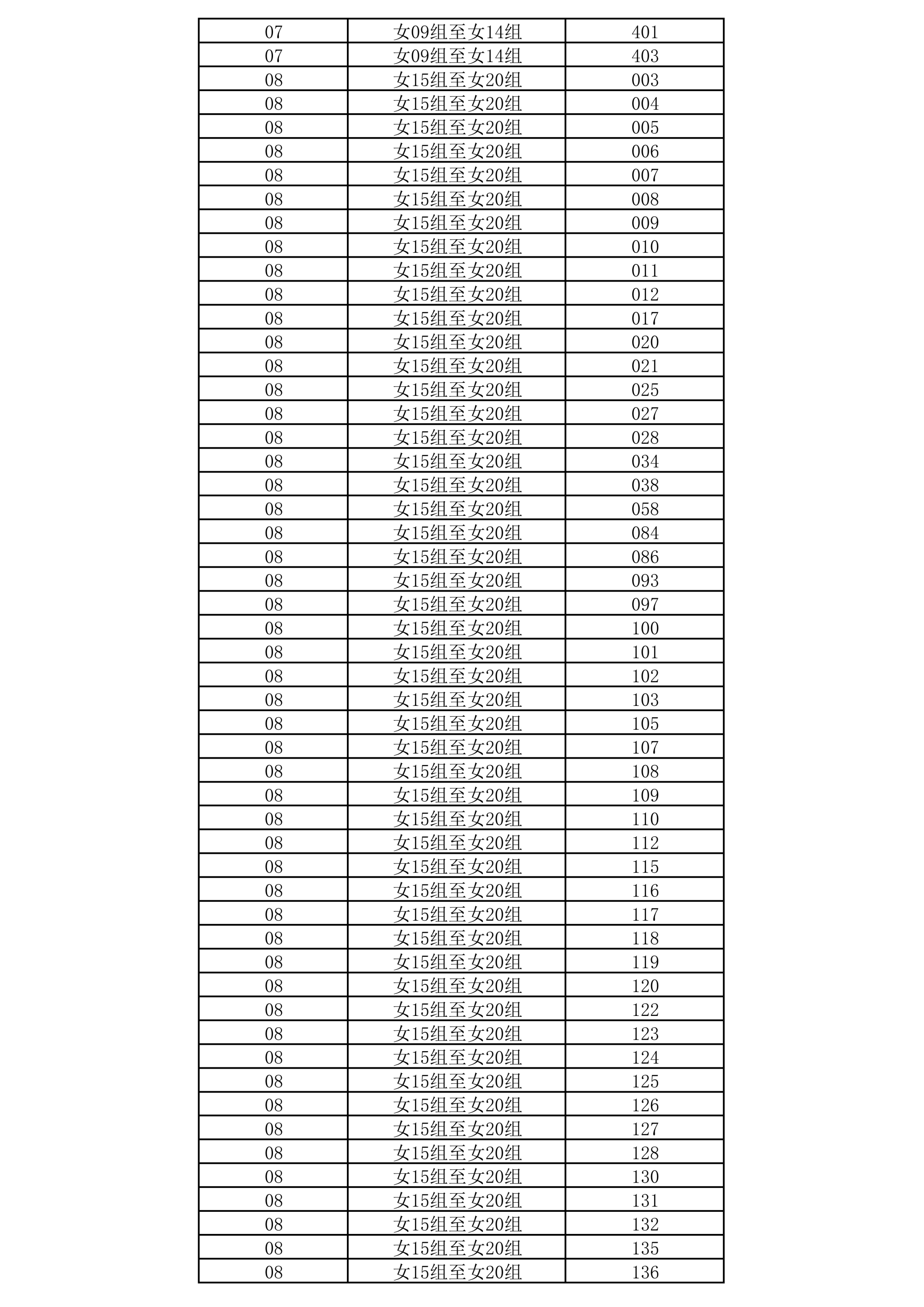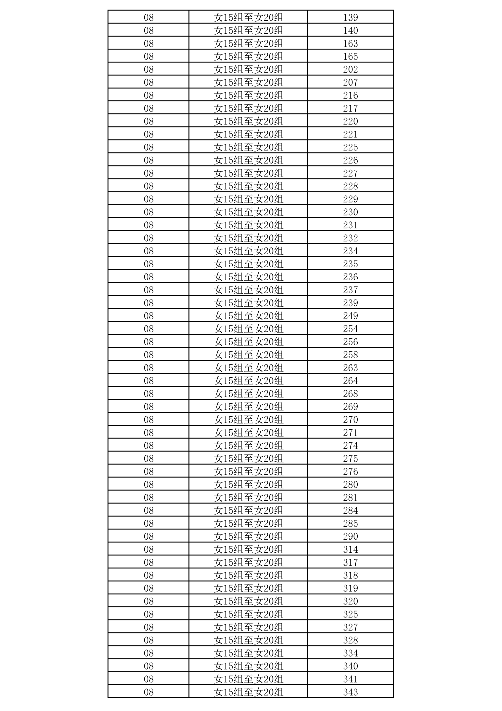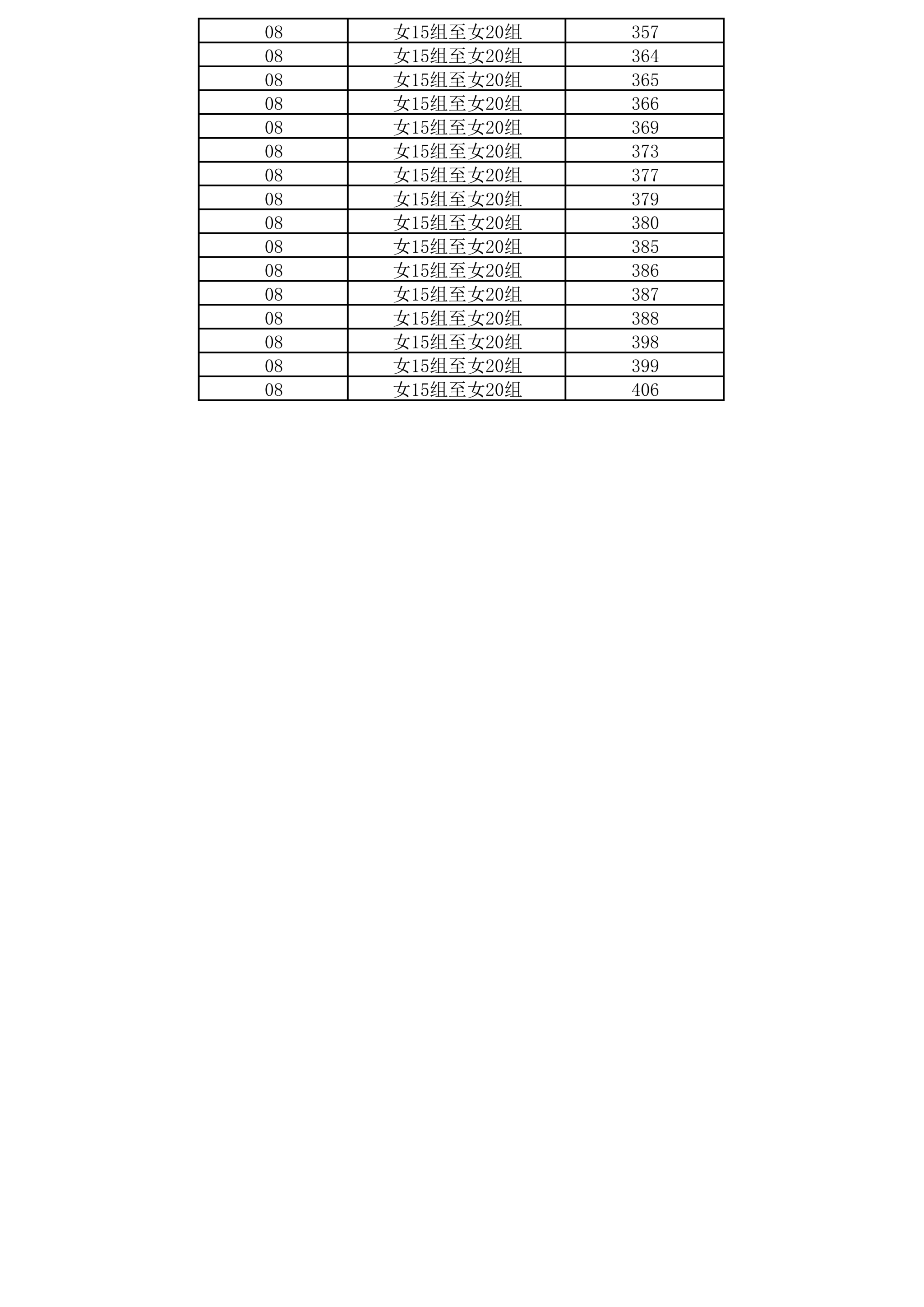 08 | 女 | 女15组至女20组 | 6 | 14:30 | 15:00 |