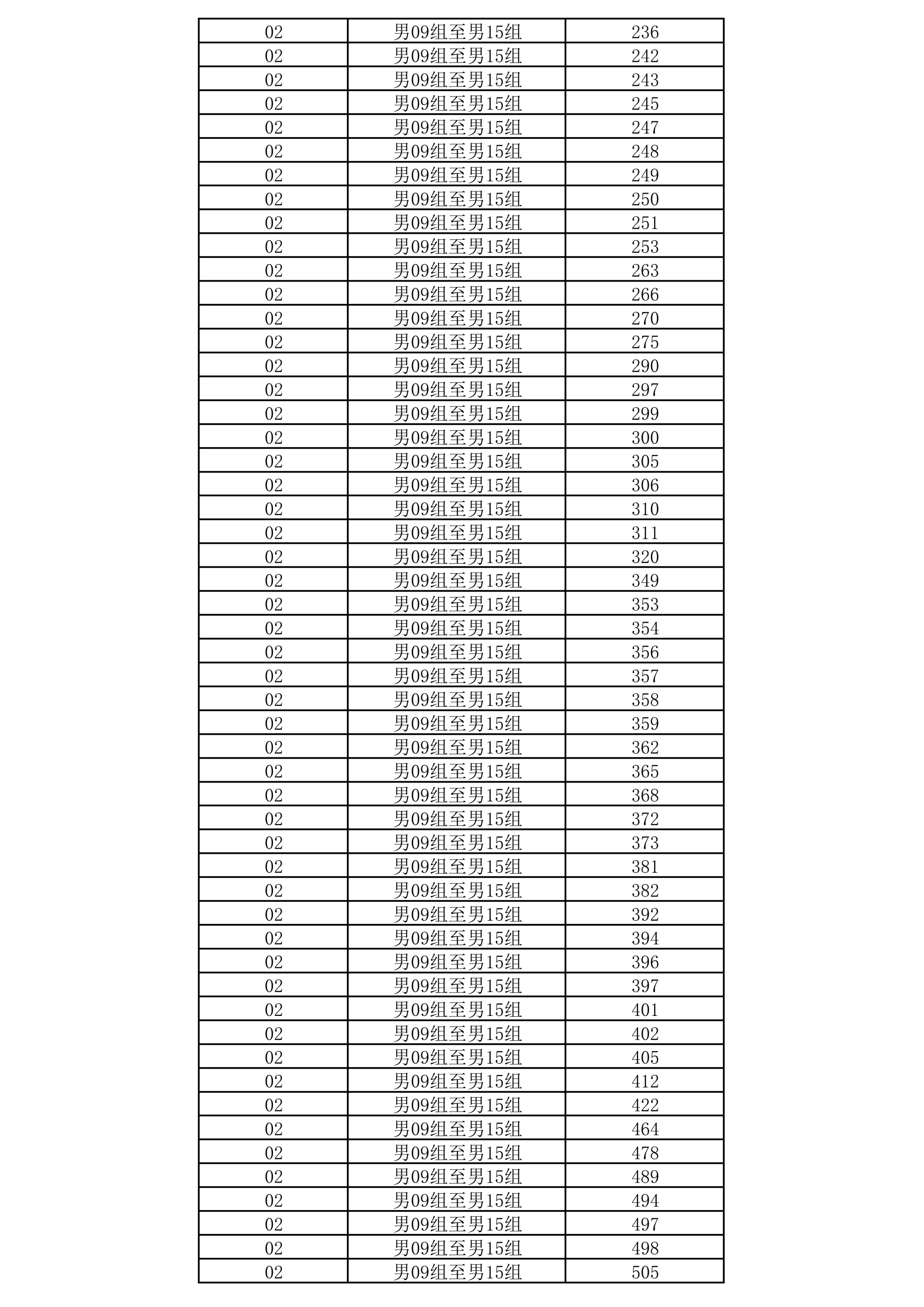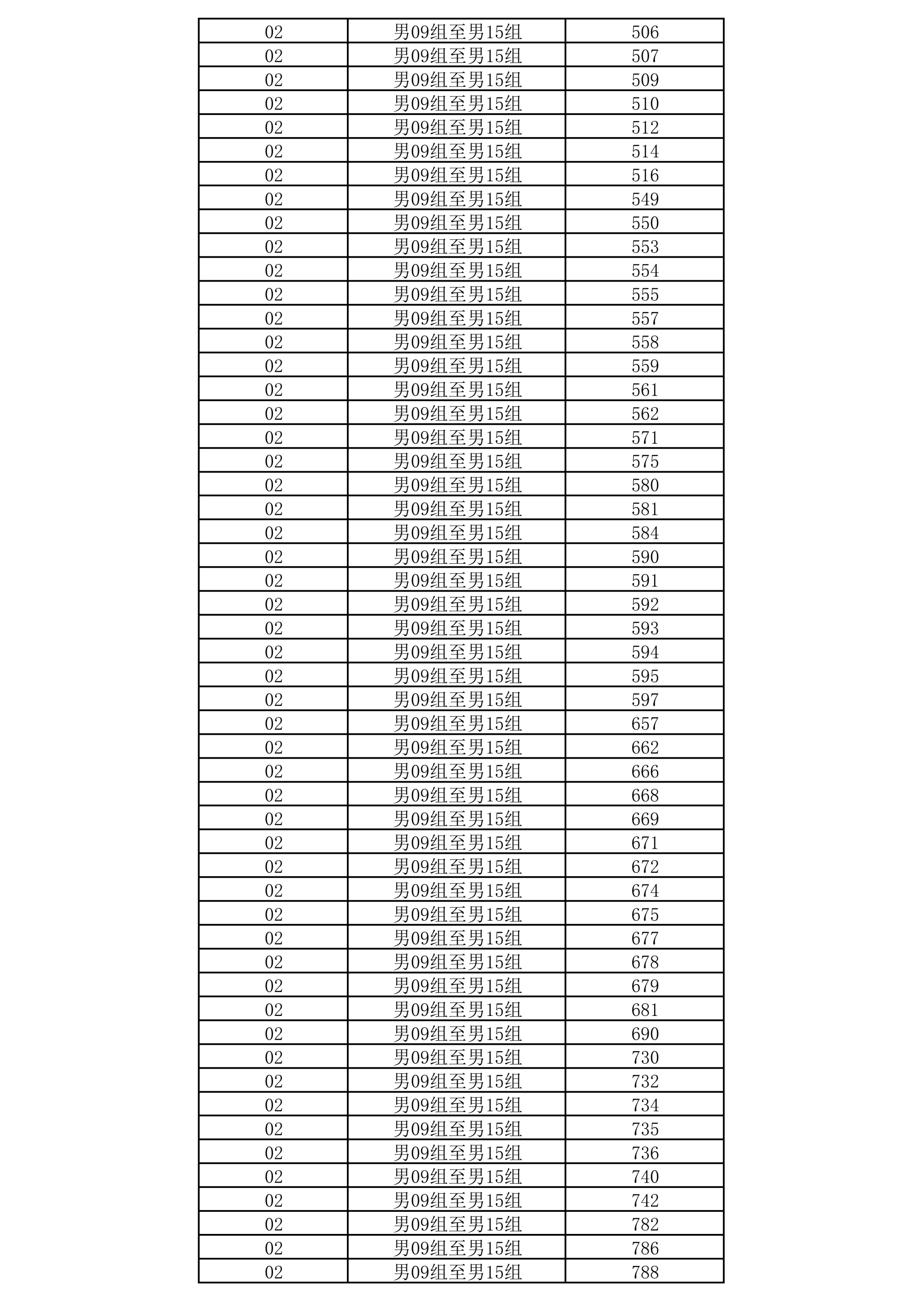 02 | 男 | 男09组至男15组 | 7 | 09:30 | 10:00 | |