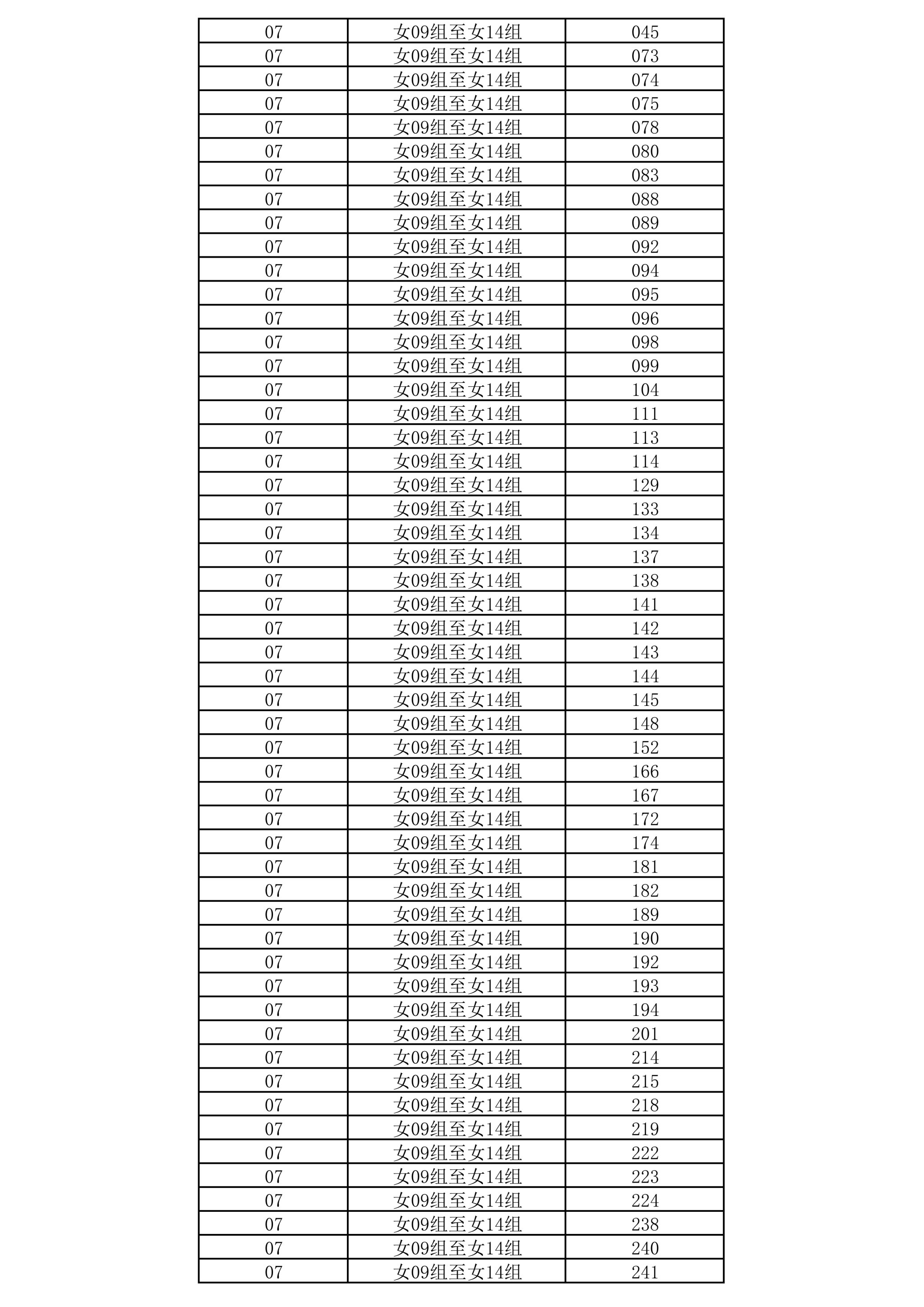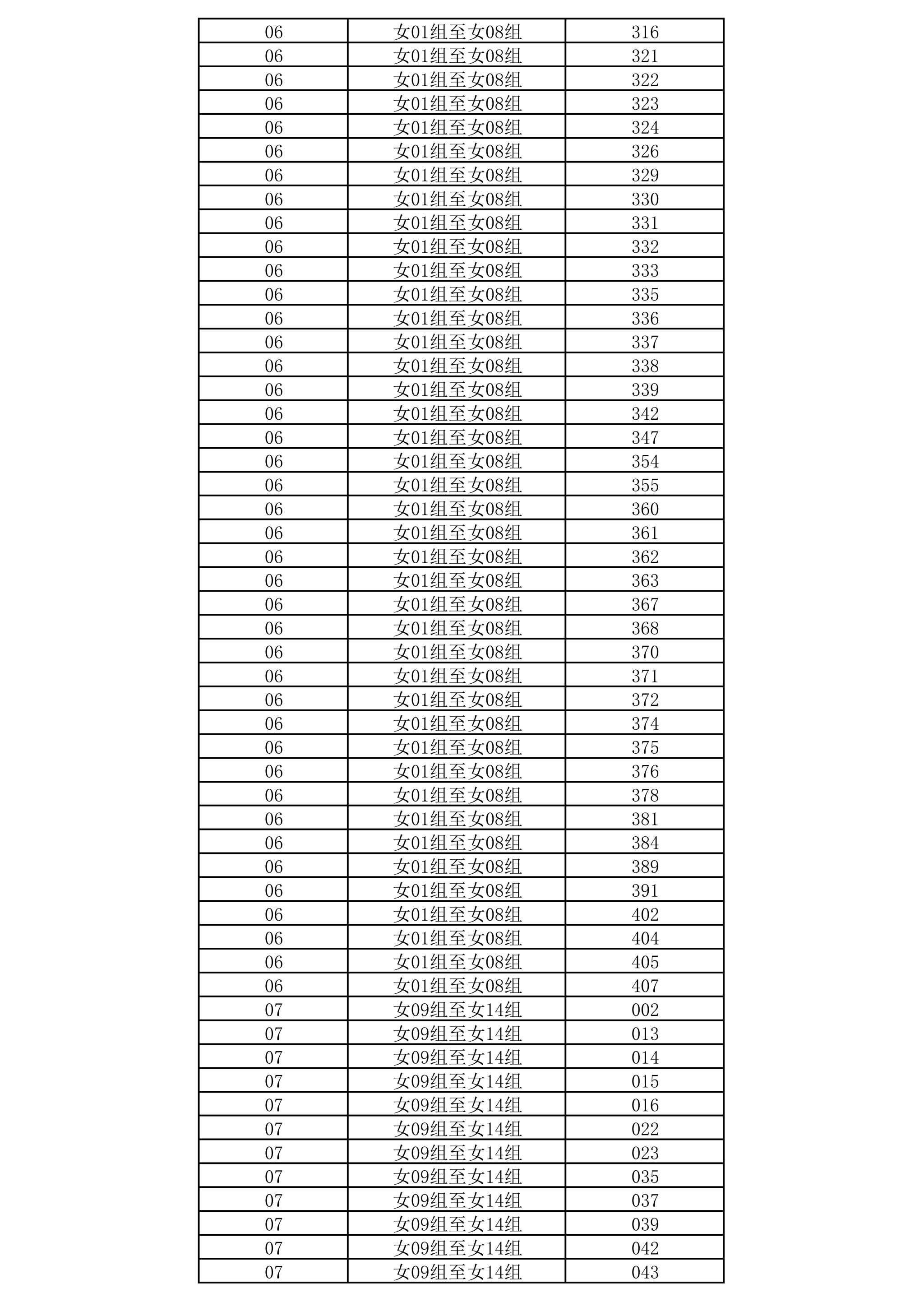 07 | 女 | 女09组至女14组 | 6 | 12:30 | 13:00 | |
