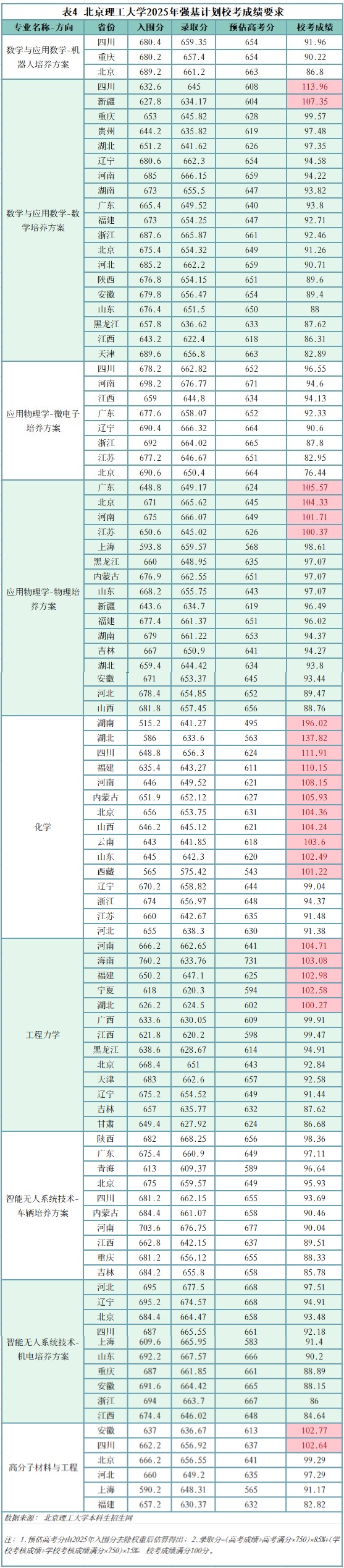 以数学与应用数学(数学培养方案)在四川、新疆为例,压线入围考生即使在校考中拿到满分,综合成绩仍无法达到该专业的录取最低分,意味着实际上岸可能性为零。类似情况还出现在应用物理学(物理培养方案)在广东、北京、河南、江苏等地的招生中,压线考生即便校考表现优异,也难以弥补入围分的差距,最终录取希望渺茫。
