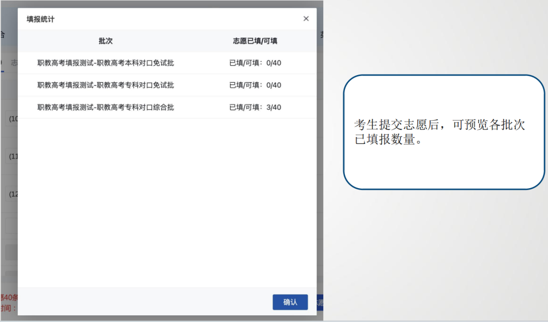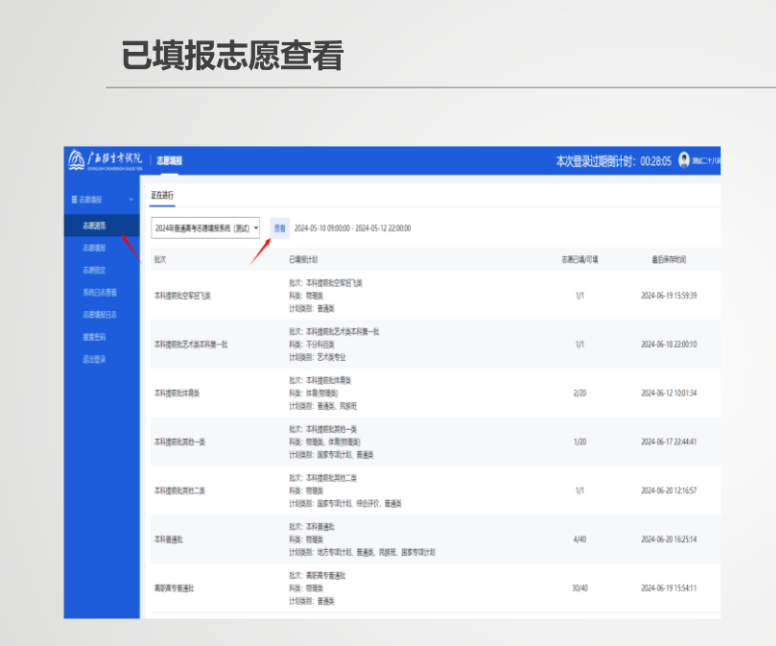 1.电脑端填报考生请点击左侧菜单“志愿浏览”查看已填报志愿信息。