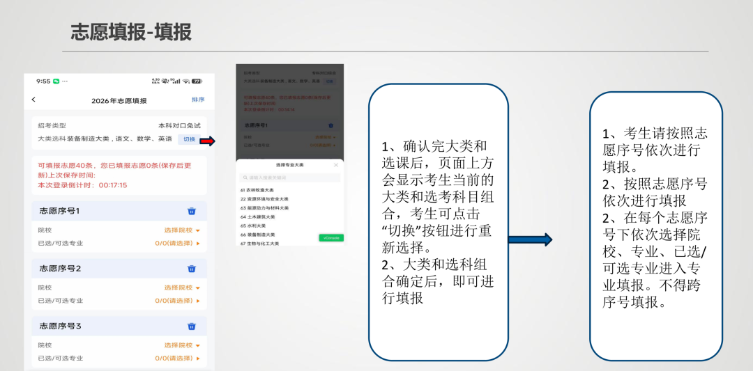 3. 考生进入填报页面后,请按照志愿序号选项卡依次填报。不得跨序号填报。