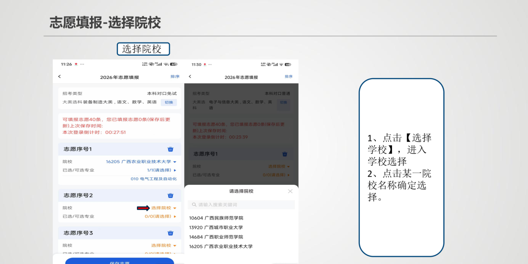 ��以上部分图片为往年截图,仅供考生参考,实际画面请以广西招生考试院2026年职教高考志愿填报系统为准。