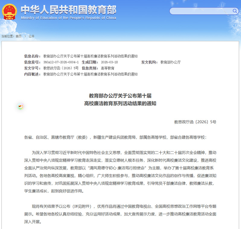 学校将以此次入选为契机,认真总结经验,持续深化廉洁教育,鼓励更多师生参与廉洁文化创作与实践,推动廉洁理念入脑入心,为培养德才兼备的高素质人才营造风清气正的校园环境。(审核:王丽萍、李颖、杨曌)