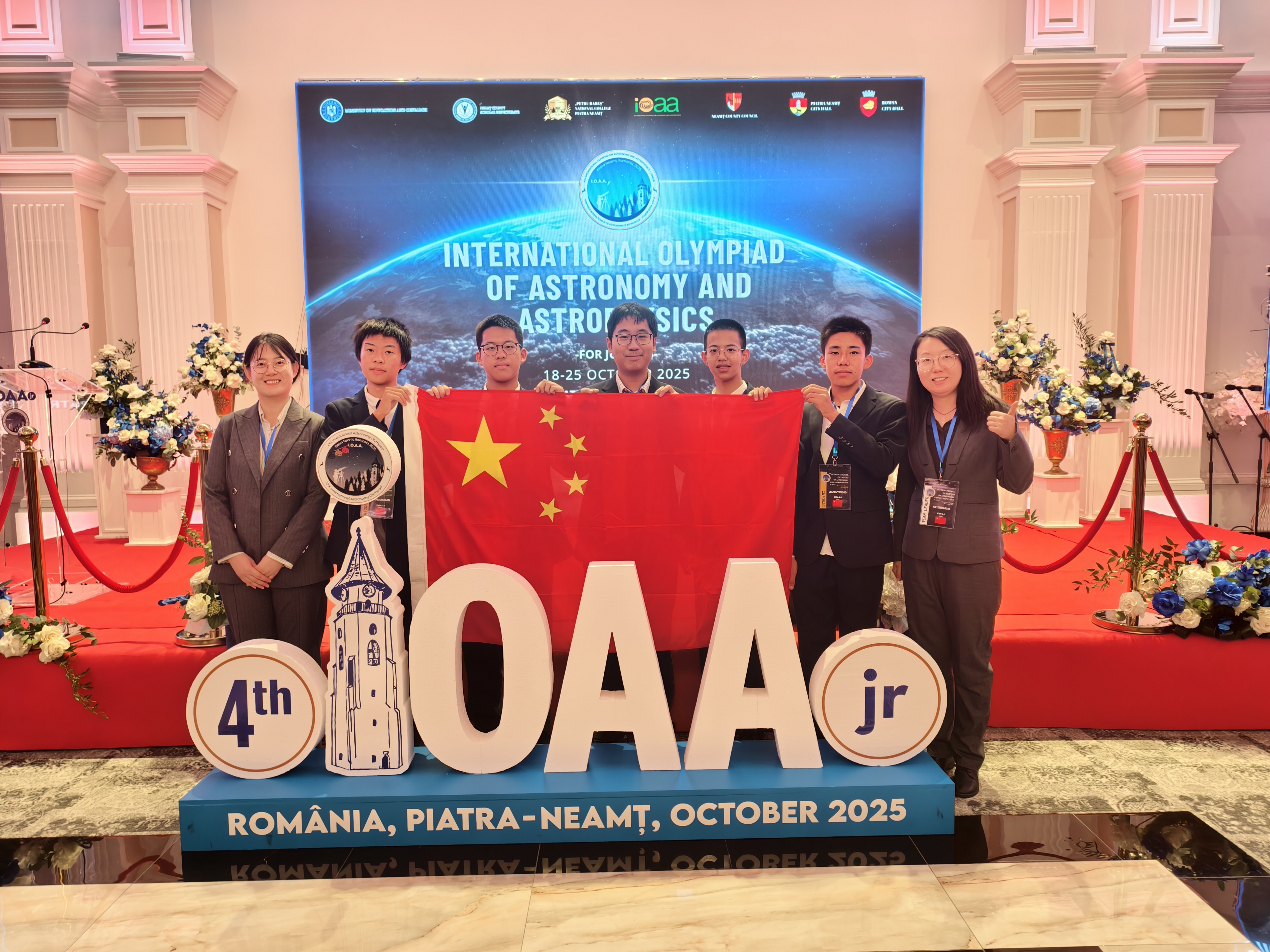 2025年10月18日至10月25日,第四届国际天文与天体物理奥林匹克竞赛(低年级组)(IOAA-jr)在罗马尼亚皮亚特拉尼亚姆茨成功举办。北京天文馆副研究员葛志帅和助理研究员郭懿琳带领由全国中学生天文知识竞赛选拔出的5名低年组优秀学生参赛。本次比赛共有来自21个国家的110余位选手参赛。经过激烈比拼,中国代表队脱颖而出,共斩获3枚金牌2枚银牌,展示了我国青少年在天文领域的智慧与风采。其中,来自杭州二中白马湖学校的简皓然同学获得了总分第三名的优异成绩。