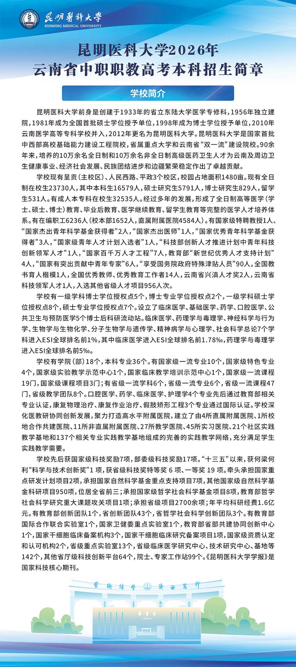 昆明医科大学2026年云南省中职职教高考本科招生简章