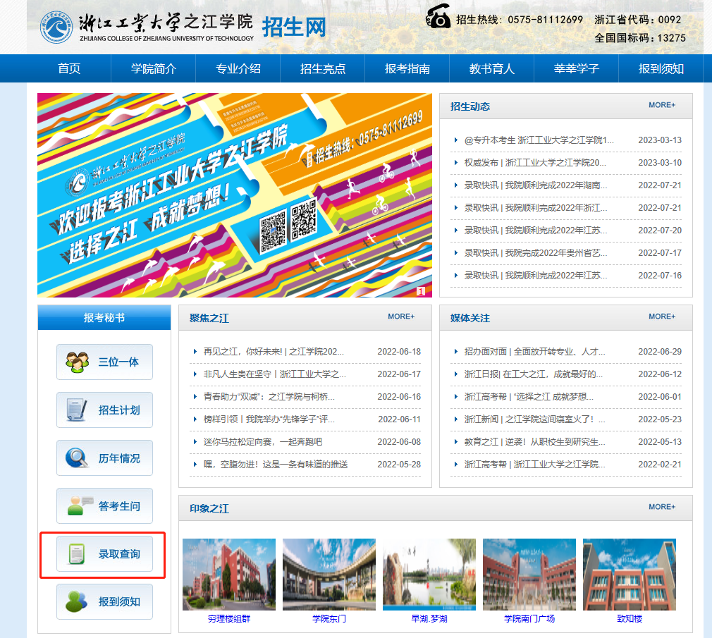 录取结果查询方式1.考生登录浙江工业大学之江学院招生网(http://lqzs.zzjc.edu.cn/luqu.html);