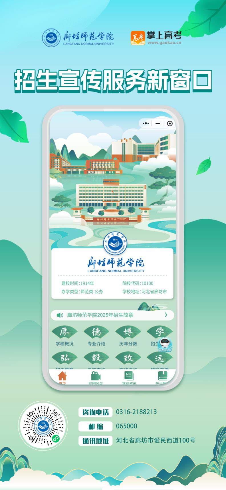 【廊坊师范学院】招生小程序正式上线,一站式满足报考全流程需求,具体功能如下,快来一起了解!