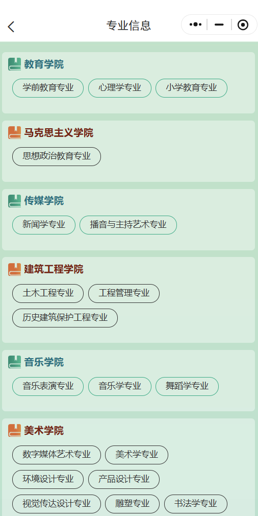 廊坊师范学院涵盖文学、理学、工学、法学、教育学、管理学、艺术学等多学科门类,各二级学院及专业详情、培养方向、课程设置、就业方向等信息,考生可通过小程序首页“院系专业”板块详细了解。
