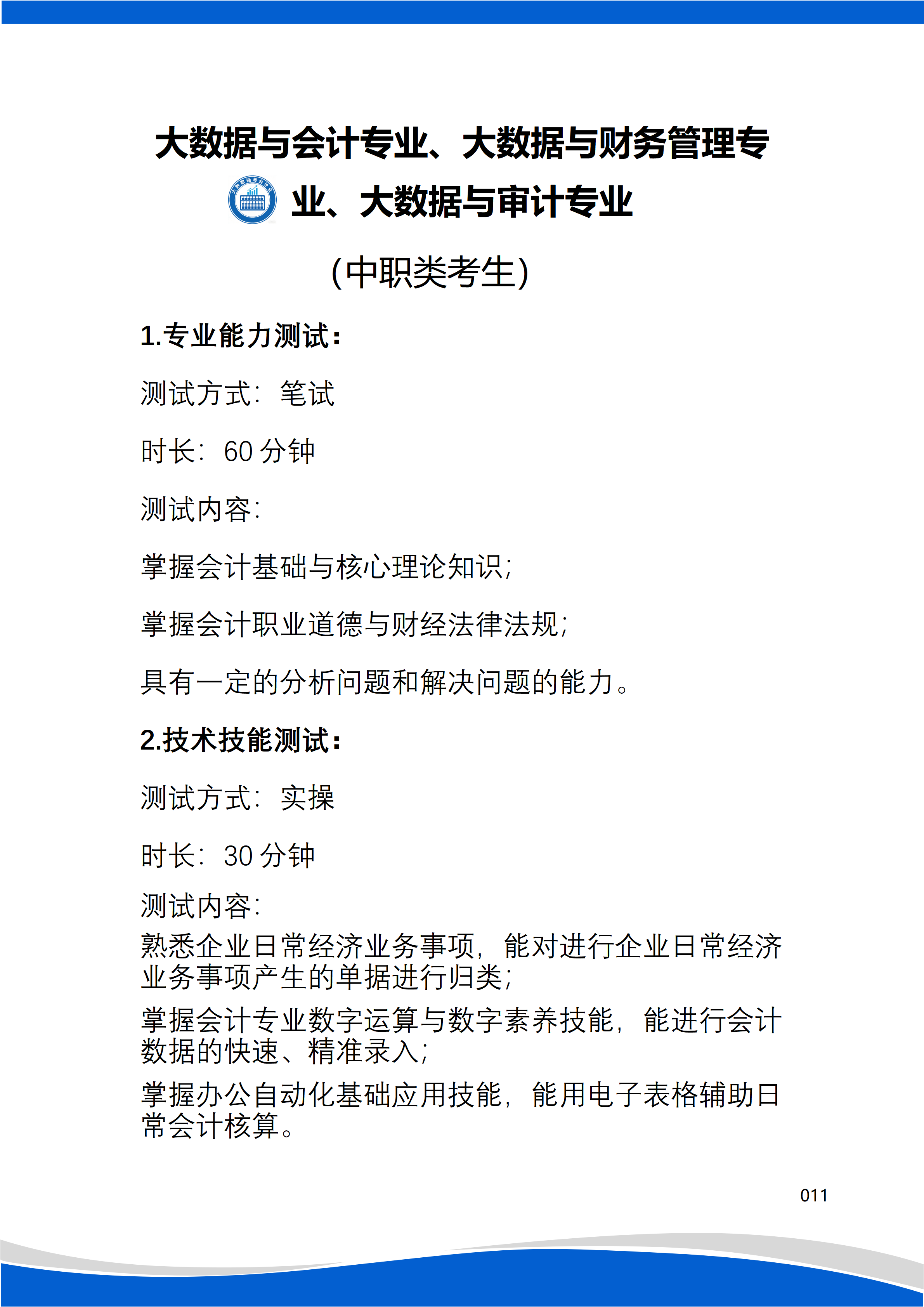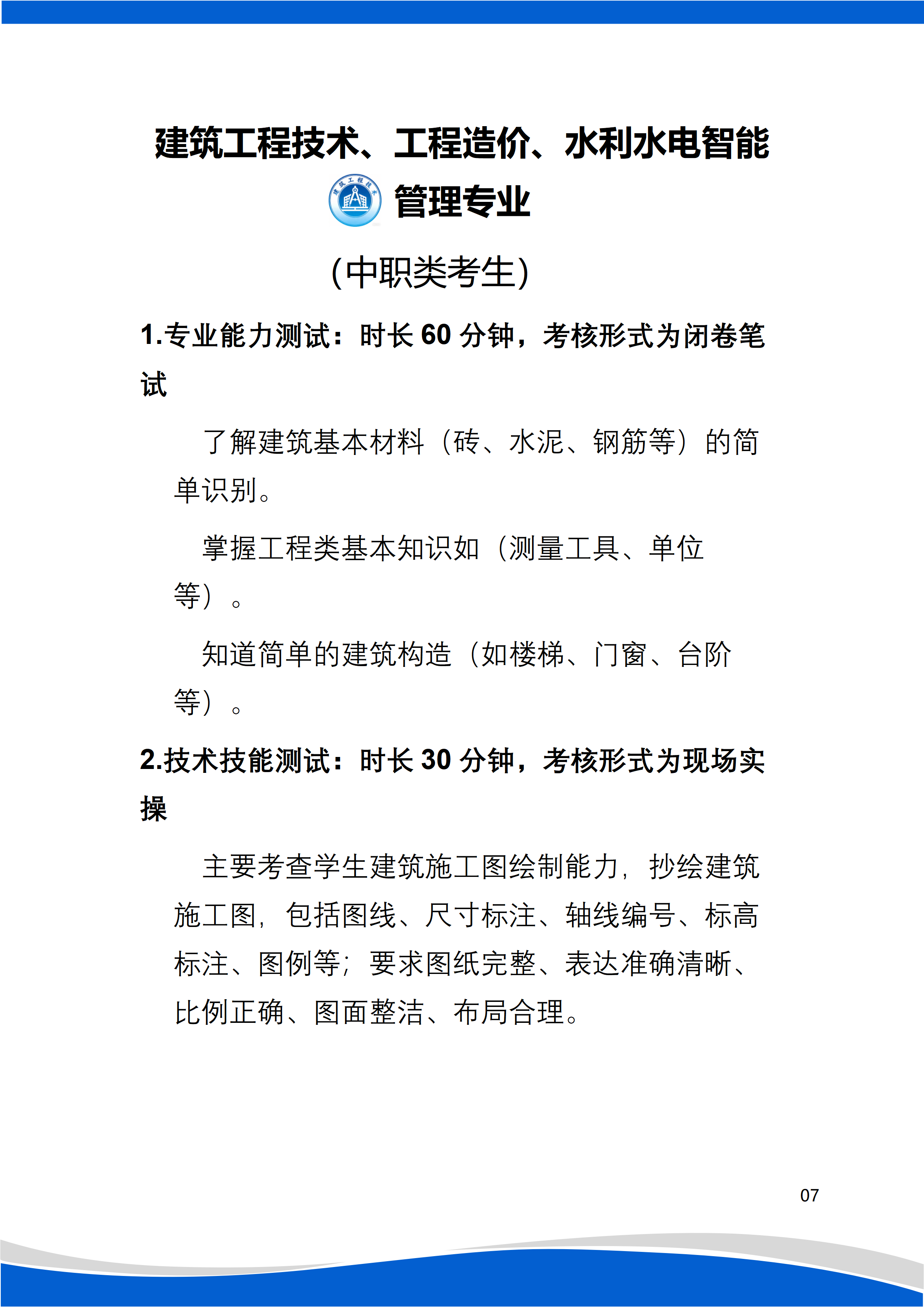 测试科目:职业技能适应性测试。