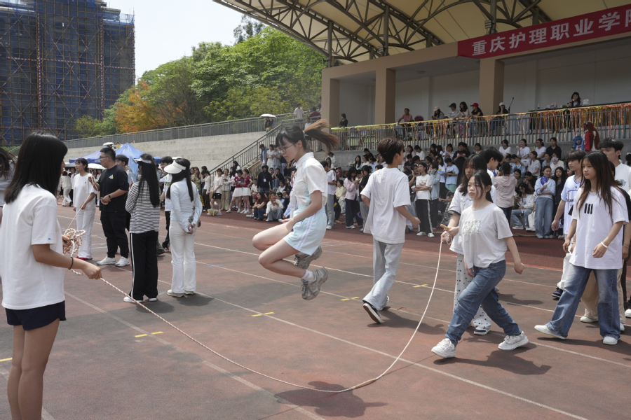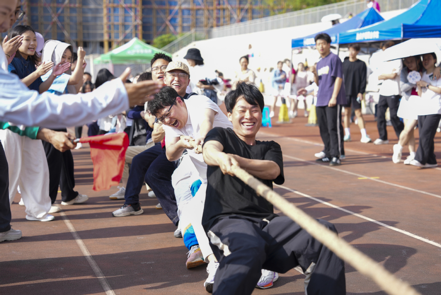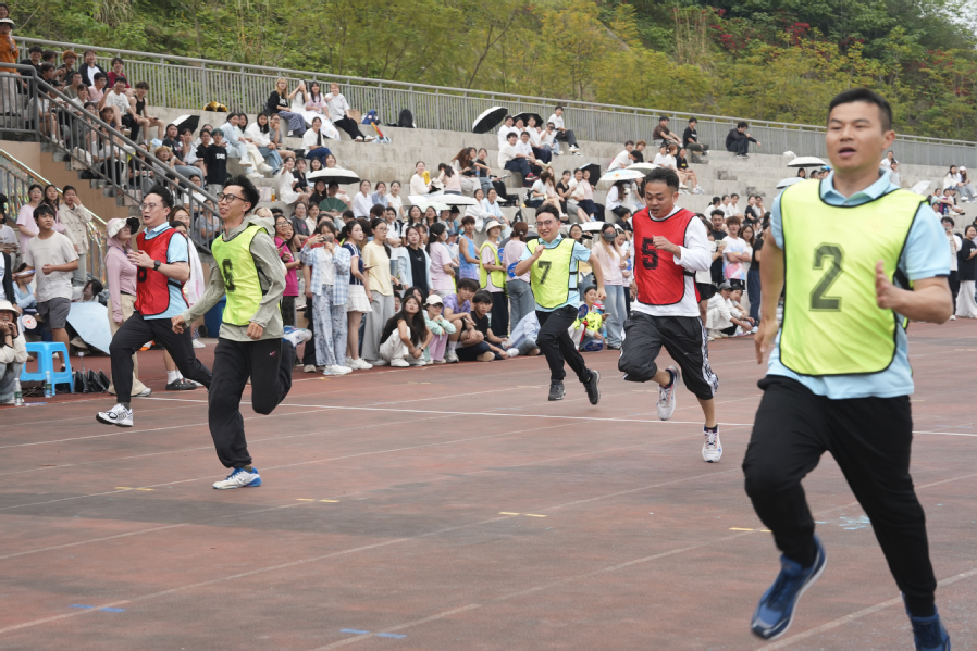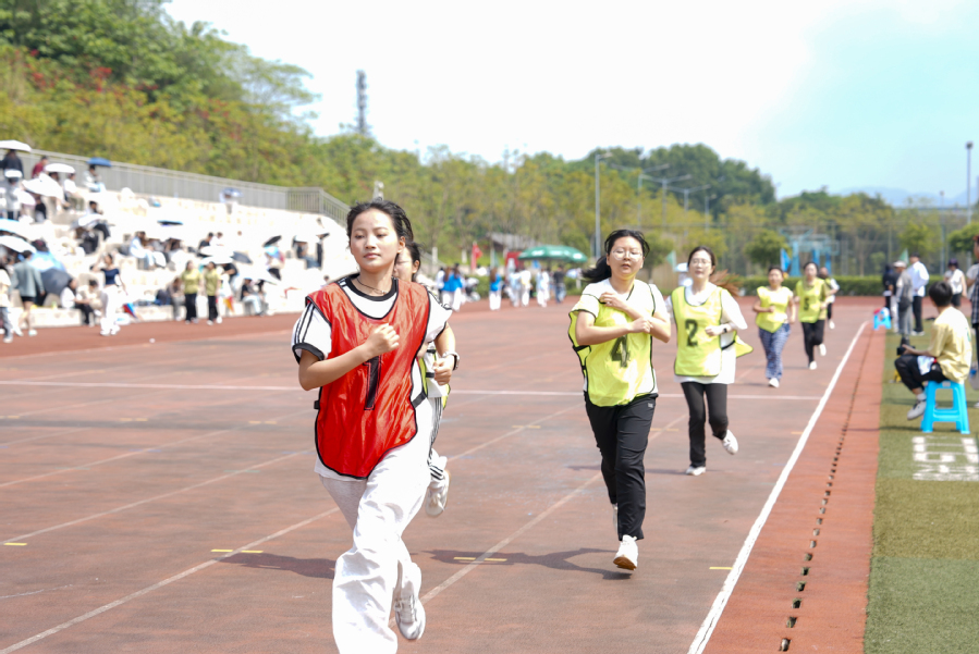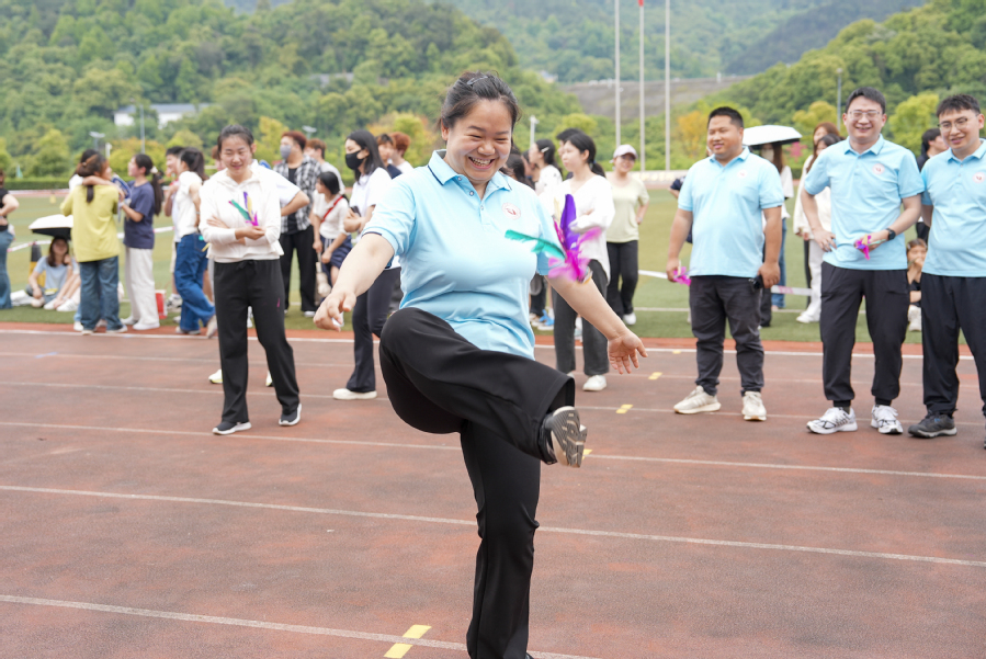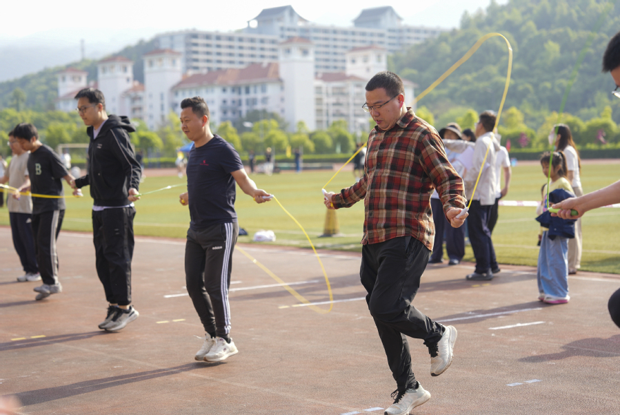 老师们走下讲台,驰骋赛场,在接力、跳绳等项目中展现出别样的活力与风采,赢得学生们的阵阵欢呼。