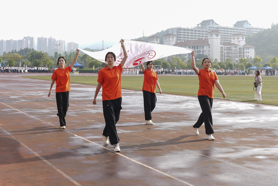 校长沈军在致辞中勉励全体运动员:要以体育之“火”燃拼搏之志,将追求卓越、永不言弃的精神内化为精进本领的动力;以体育之“钥”启健康之门,让运动走进生活,用健康点亮人生;以体育之“桥”聚团队之力,将赛场上的默契转化为未来守护健康的职业力量。