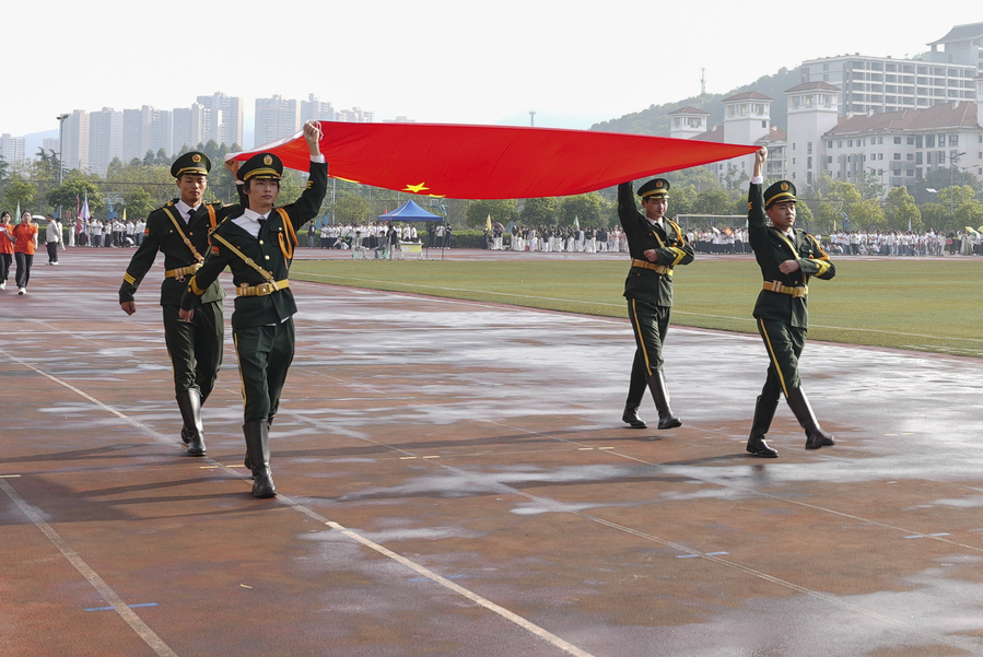 4月16日至17日,学校第八届春季田径运动会在田径场开幕。全体校领导、各直属党组织书记、各部系(中心)负责人及全校师生共襄体育盛事。公共基础与体育工作部部长张征然主持开幕式。