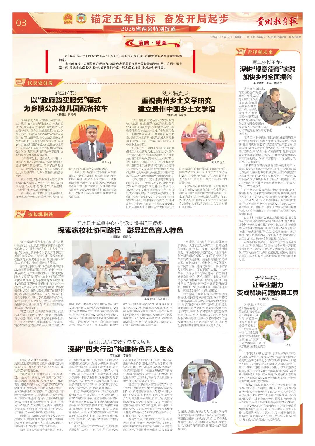 1月30日《贵州教育报》03版关于未来学习思考?省两会期间,贵阳信息科技学院信息工程学院服务科学与工程专业学生杨凡在接受采访时表示,未来学习是一场“从课堂到现场”的深度实践之旅,能让“服务”二字从课本里走出来,变成手里解决问题的真工具。