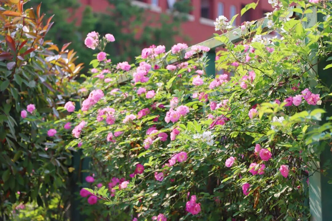 绕满校园花廊层层叠叠的花瓣簇拥在一起像漫天云霞垂落枝头温柔且清香