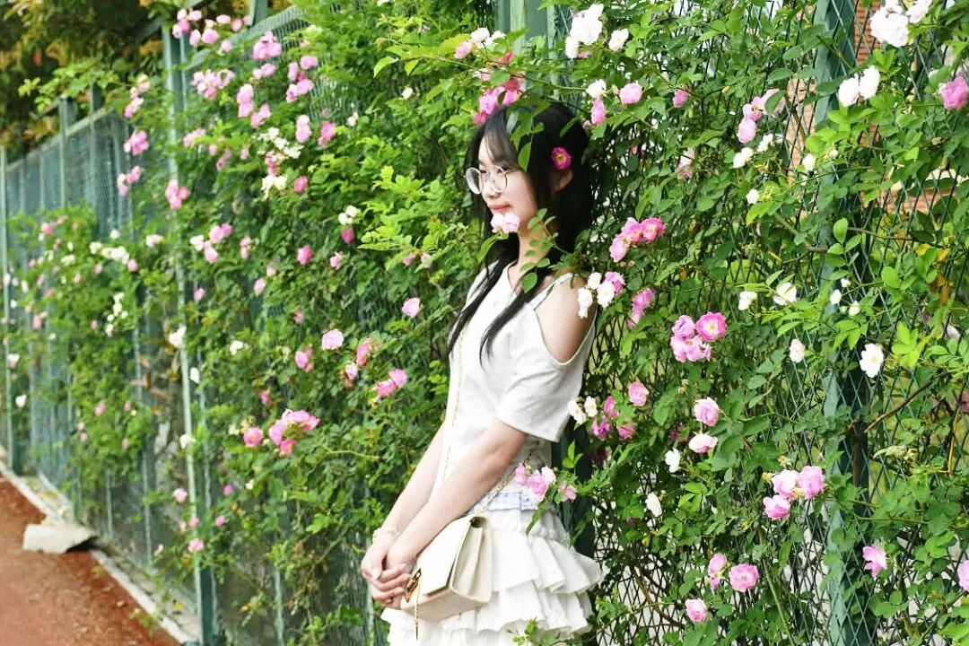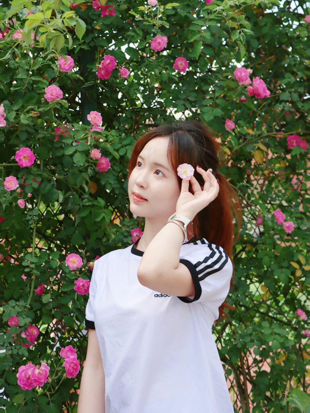 趁微风不燥约上同窗好友漫步蔷薇花下