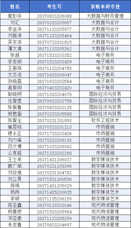 根据《山东省教育厅 山东省人民政府征兵办公室 山东省退役军人事务厅 关于做好2026年普通高等教育专科升本科考试招生工作的通知》(鲁教学函〔2025〕24号)有关要求,我校专升本退役大学生士兵首次志愿录取工作已完成,现将录取名单公示如下: