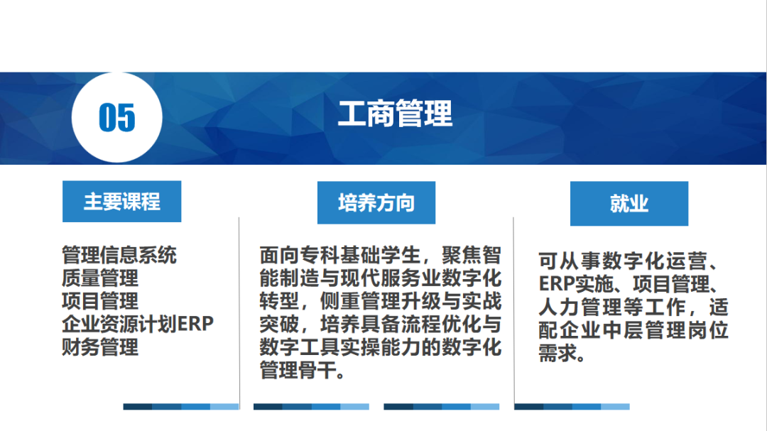 学历进阶新赛道,数智商科新高地!为助力专科学子拓宽升学通道、实现学历与能力双提升。学院依托二十余年商科办学底蕴,聚焦数字经济与现代管理领域人才需求,重磅推出10个特色招生专业,以优质师资、完善体系、产教平台,诚邀广大追梦学子加入,共赴数智商科新征程!