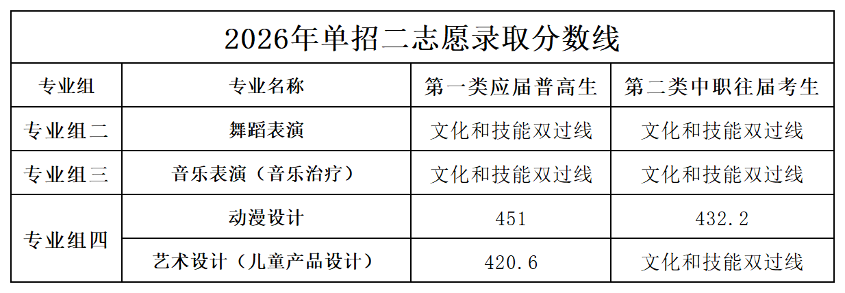 二、长沙幼儿师范高等专科学校2026年单招二志愿录取分数线