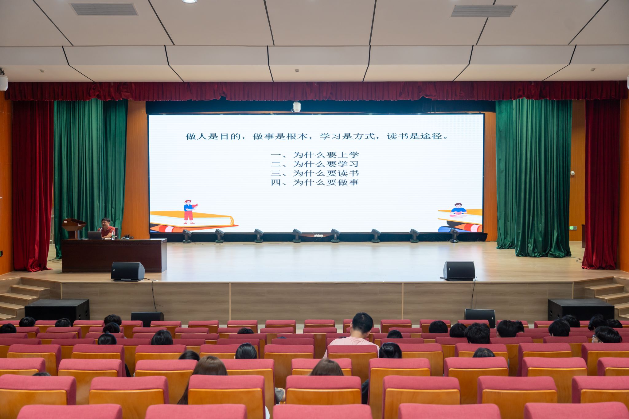 胡波教授结合自身求学、阅读、治学与工作的丰富经历,通过古今中外的实例和真切动人的体会,与同学们深入探讨“为什么要上学、为什么要学习、为什么要读书、为什么要做事”这四个贯穿成长历程的核心问题,阐述了“做人是目的、做事是根本、学习是方式、读书是途径”的深刻感悟,有效激发了同学们的阅读热情与对个人成长的深入思考。