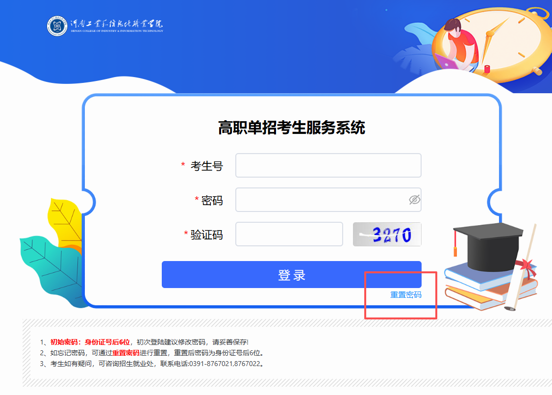 5.考生修改登录密码后,如忘记登录密码,可在登陆页面进行重置。
