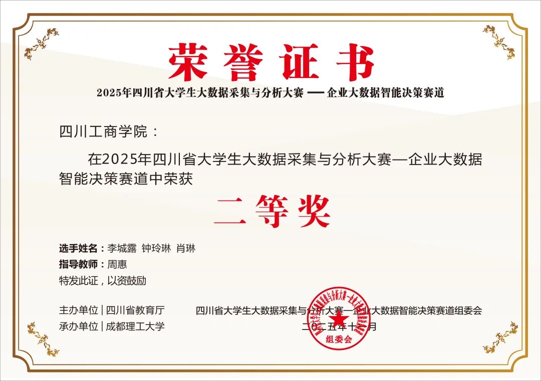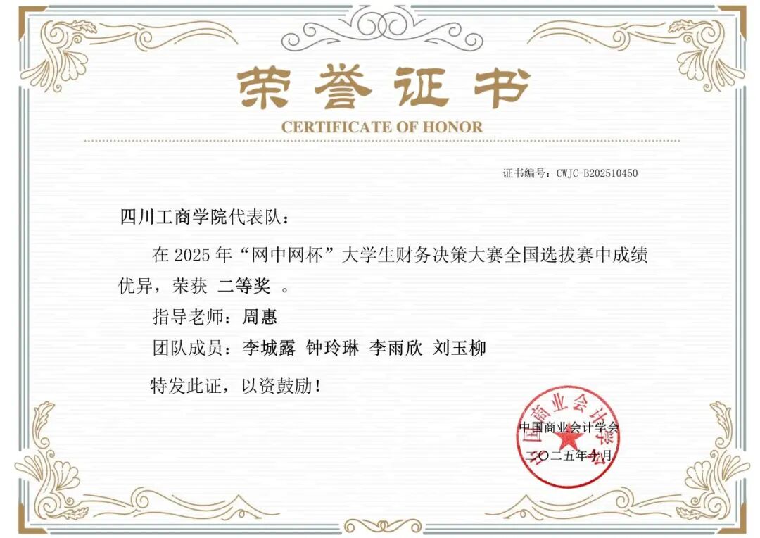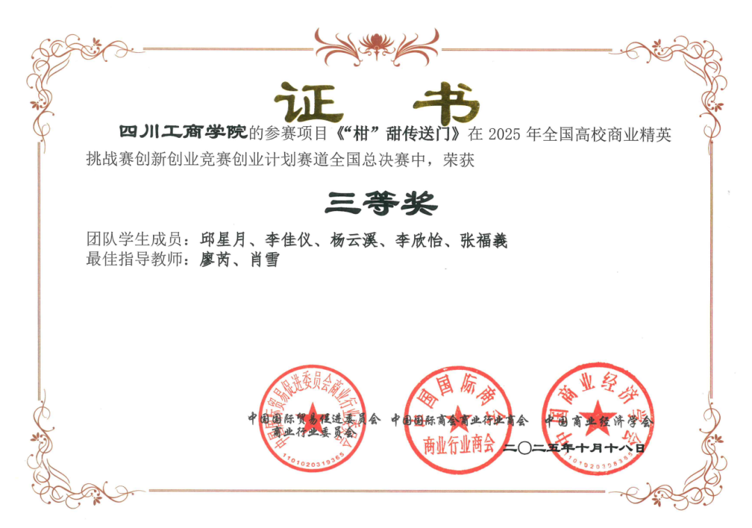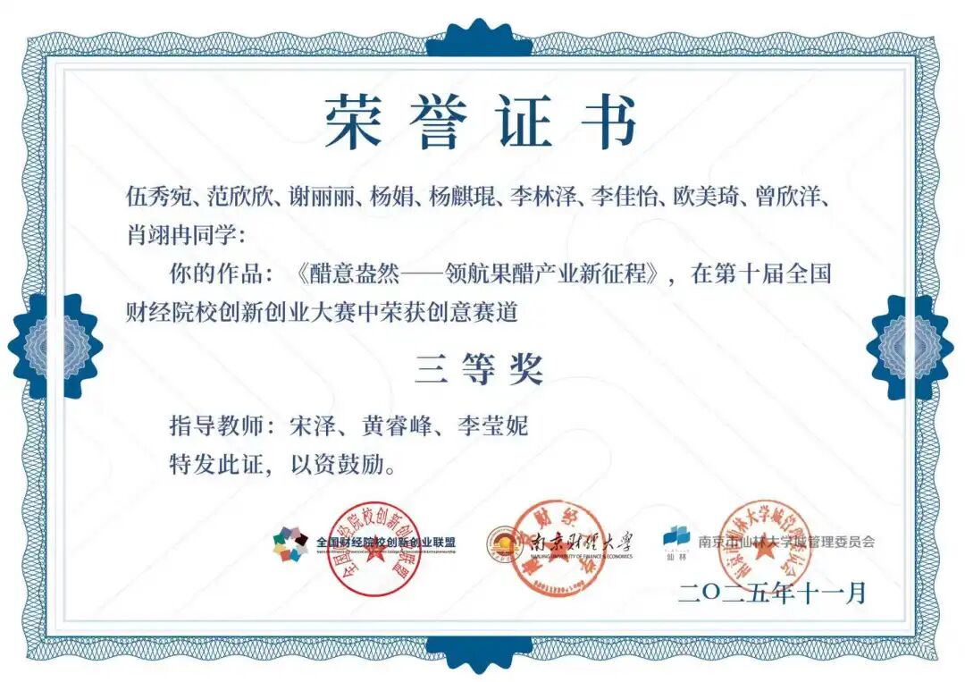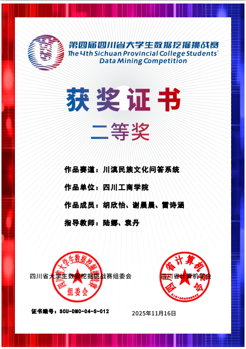 获奖证书: