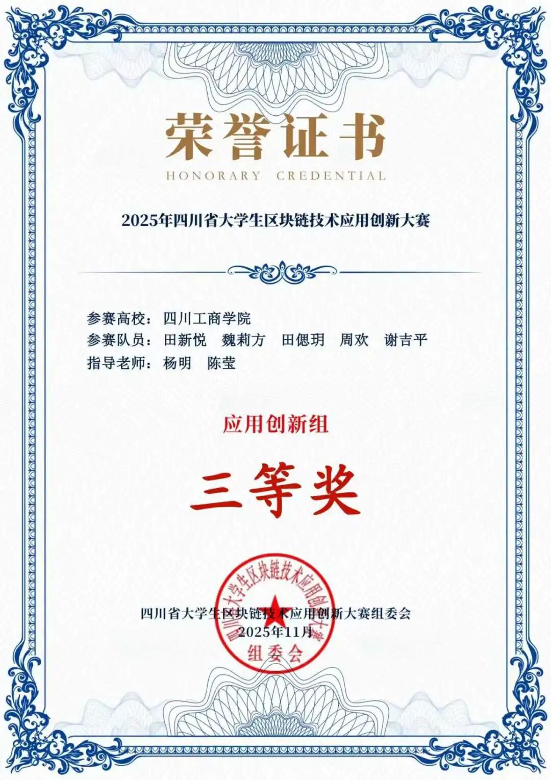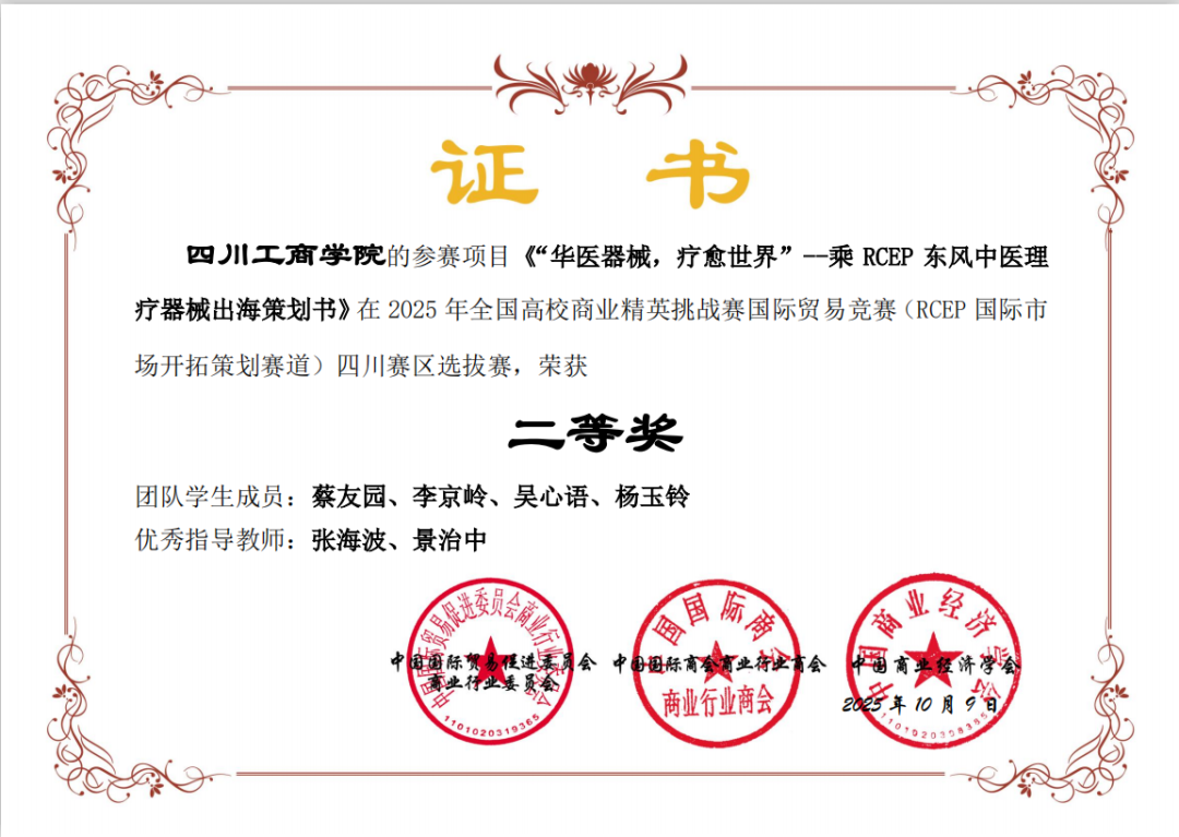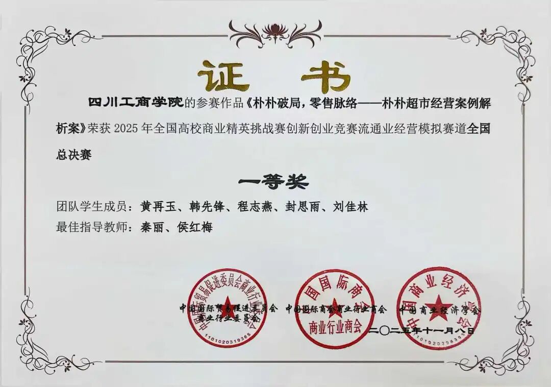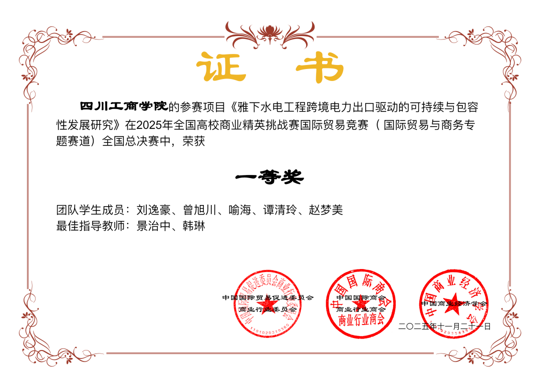 获奖证书:
