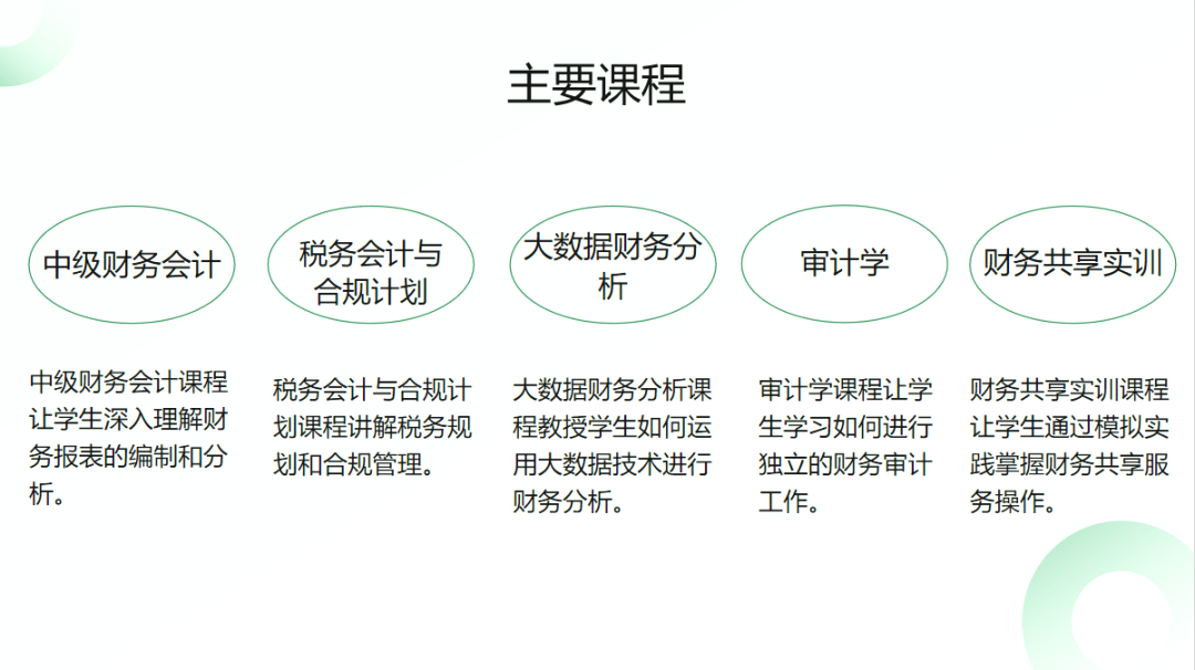 培养方向:本专业深度锚定数智化转型时代浪潮,紧扣会计行业数字化、智能化发展核心趋势,面向行业紧缺人才需求,培养德、智、体、美、劳全面发展的复合型数智化应用型会计人才。