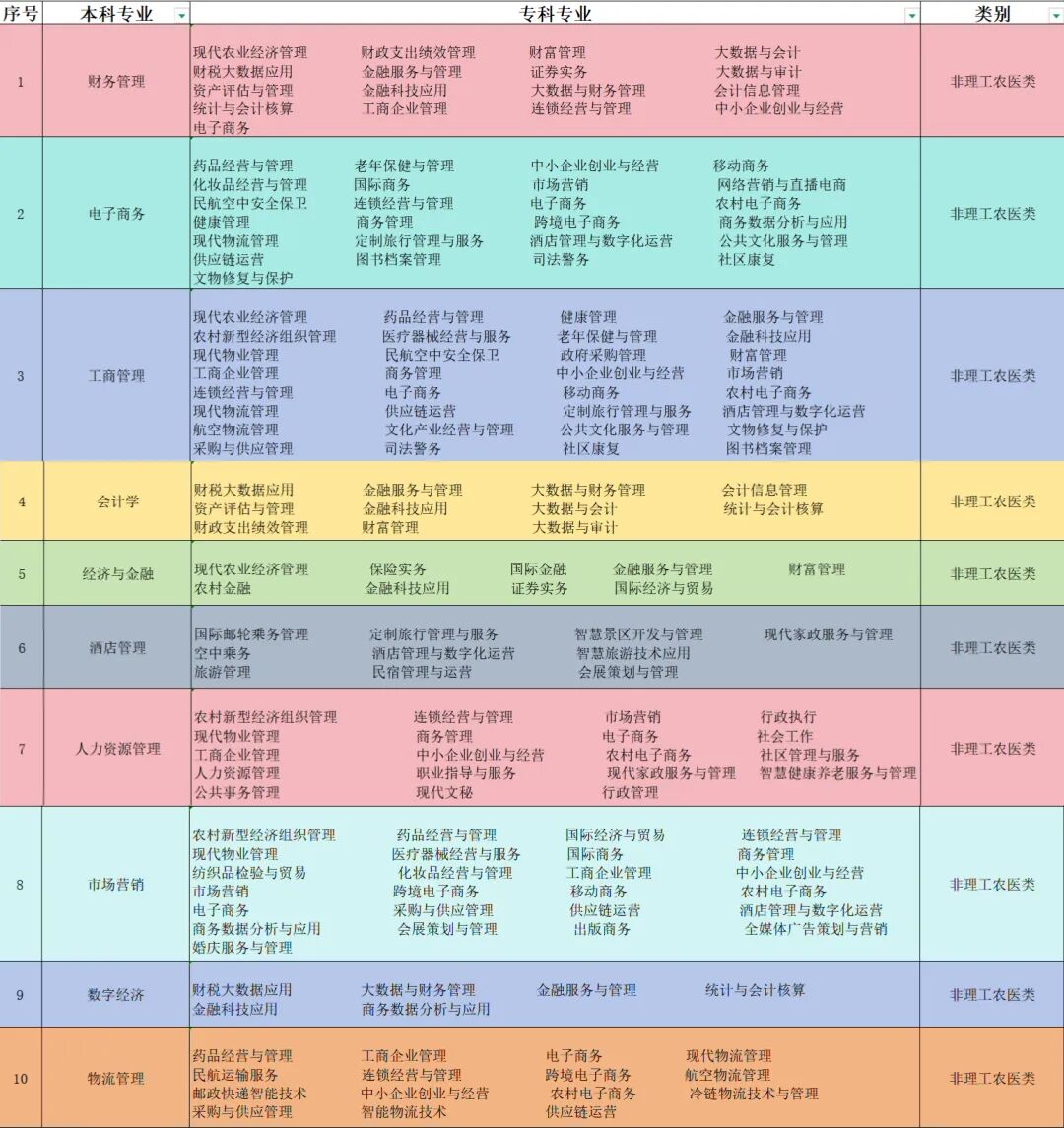专升本专科专业对应指导目录