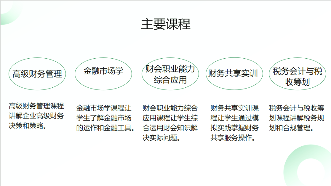 就业:毕业生能在各类企事业、金融机构和政府部门,从事投融资管理、风险管理、理财规划、税收管理等工作。