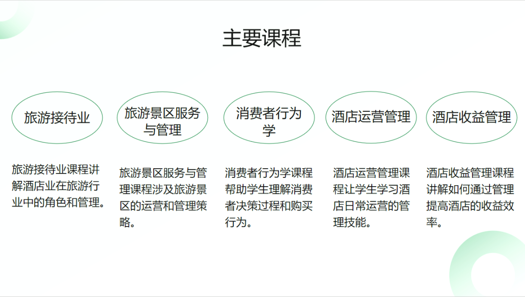 酒店管理是对接文旅强国战略、适配高端服务行业的特色管理专业。本专业立足文旅融合、康养旅居产业发展,系统学习前厅客房运营、餐饮服务管理、酒店数字化运营、宾客关系维护、会务宴会策划、康养旅居管理等内容,重点培养服务意识强、管理能力足、综合素质高的中层酒店管理实用人才,适配星级酒店、文旅综合体、康养基地优质岗位。