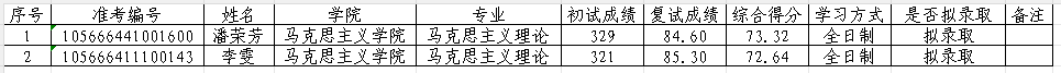 因我校一志愿考生杨智凯个人放弃拟录取及学校专业录取计划调整,补录我校一志愿考生潘荣芳、李雯,现予以公示,公示期:4月27日至5月3日。公示期内若对拟录取名单有异议的,请以真实姓名书面向我校研招办提供相关信息。