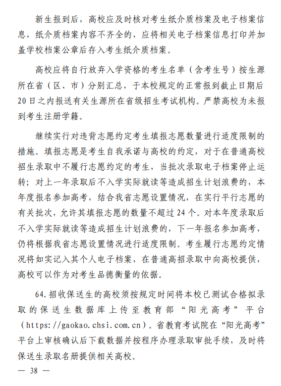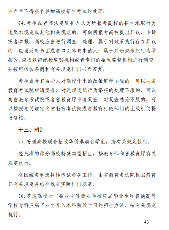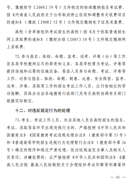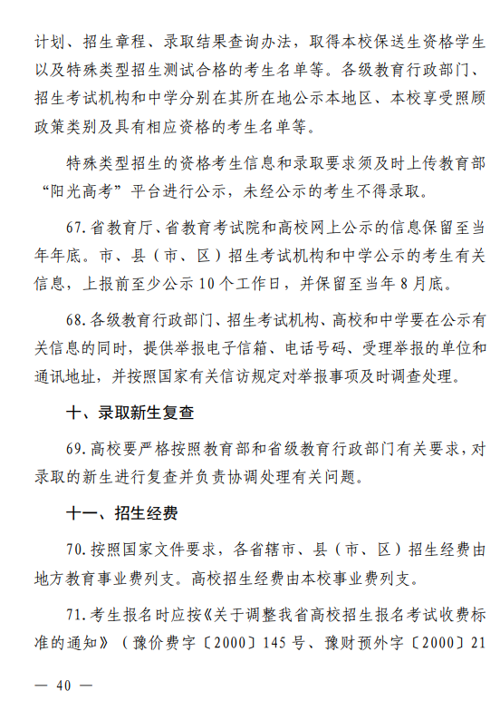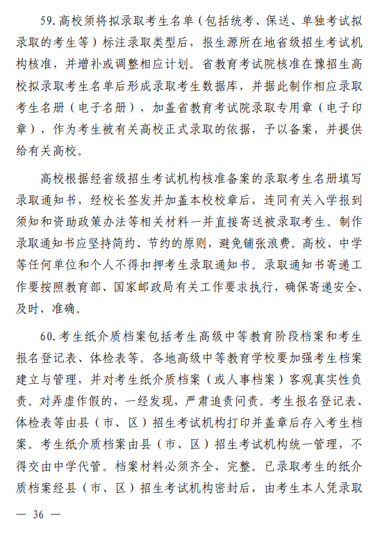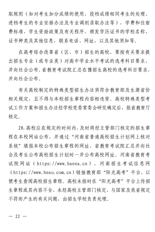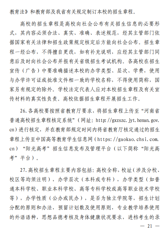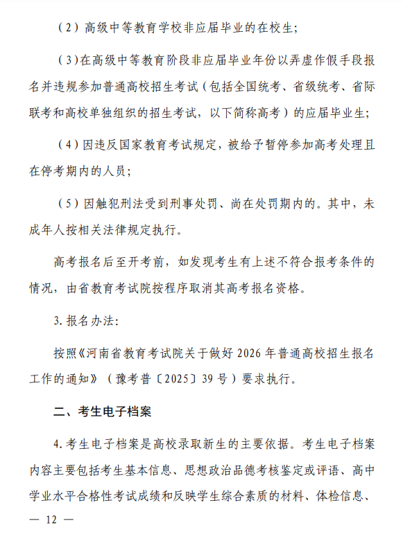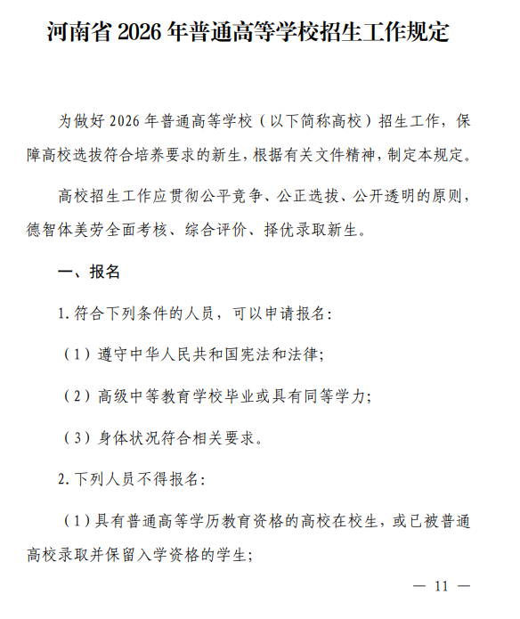 河南省 2026 年普通高等学校招生工作规定