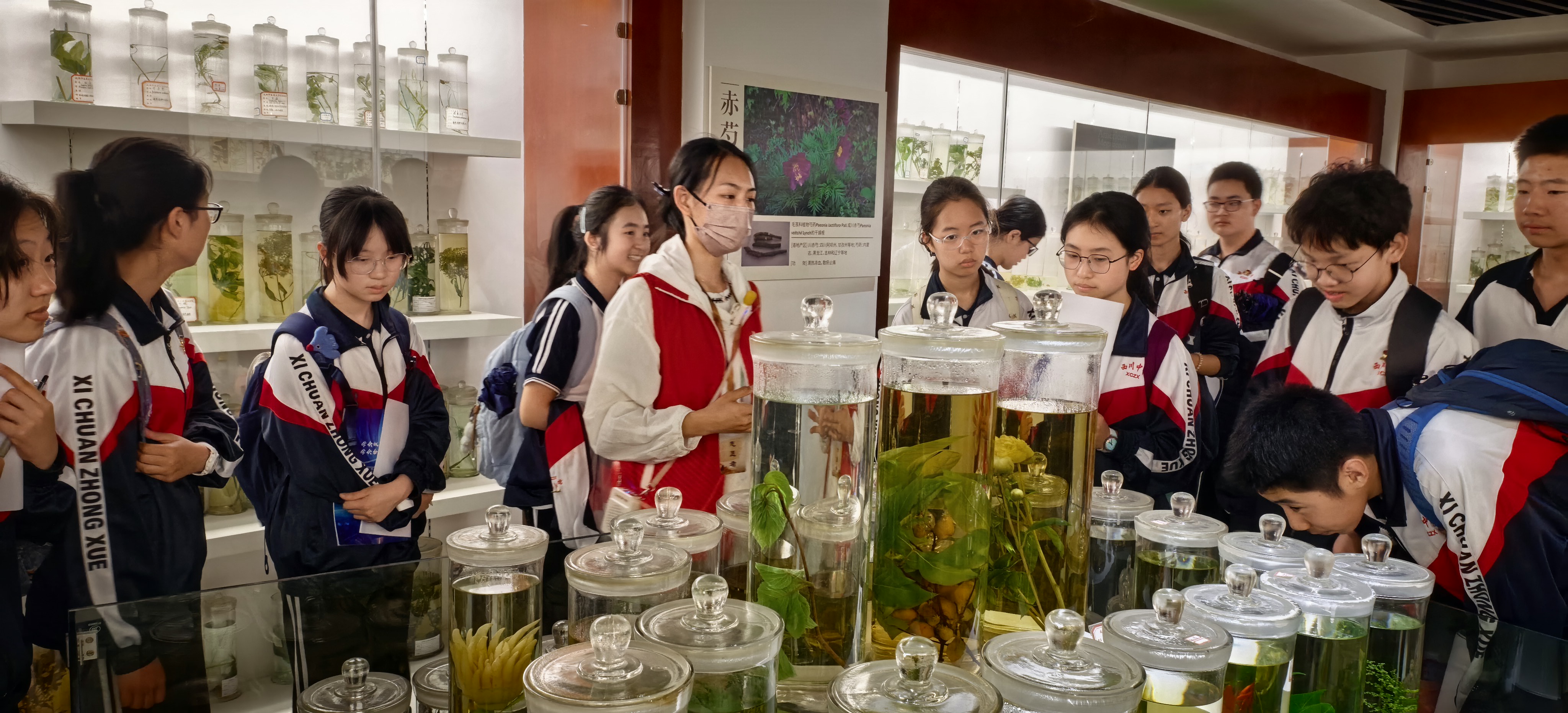下午,西川中学的同学们在老师带领下抵达成都中医药大学温江校区博物馆,在专业讲解员的带领下开启了一场穿越时空的中医药文化之旅。