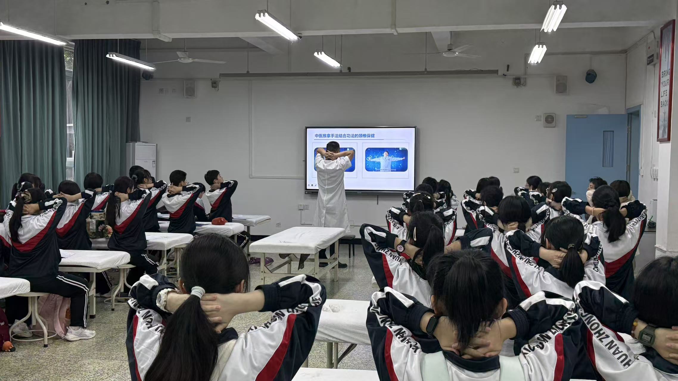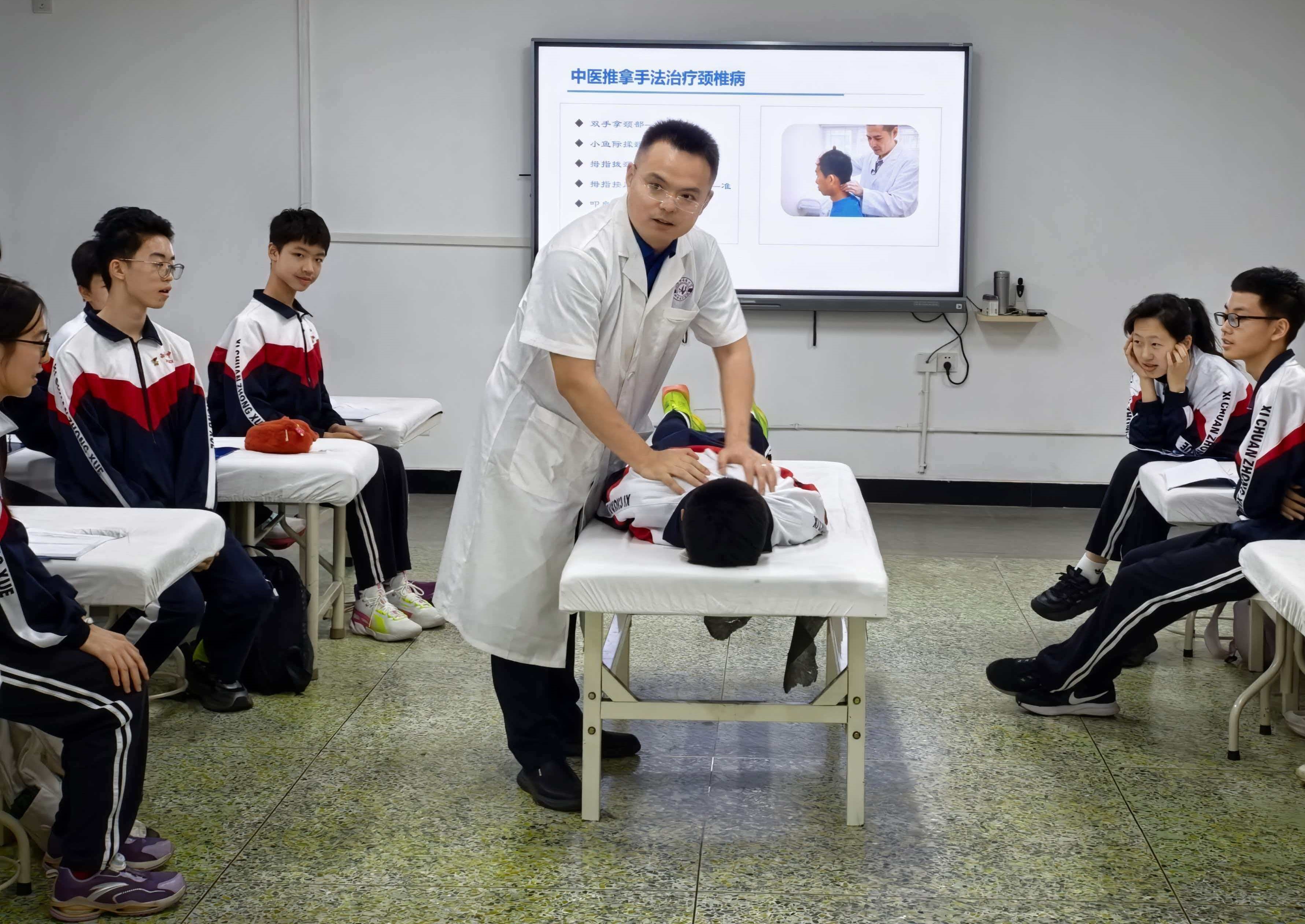 随后,最受期待的针灸推拿体验课正式开始。课堂上,专业老师讲解了针灸的起源、发展及现代应用。进入实操环节,在老师的规范指导下,同学们近距离观察针灸针具、了解人体经络穴位分布,帮助同学们解决学习生活中常见的颈椎问题。理论与实践紧密结合,既普及了传统针灸知识,又培养了规范操作的意识。不少同学课后兴奋地表示:“原来针灸这么神奇,以后我也想学中医!”