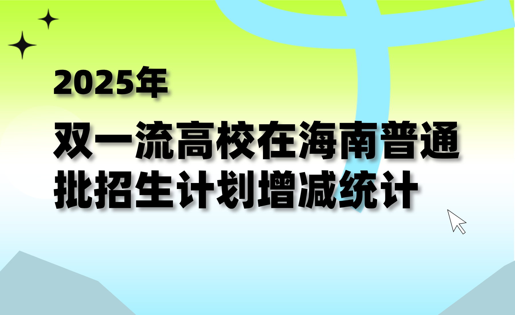 2025年双一流高校在海南普通批招生计划增减统计:招生计划总数较2024年增加1230人
